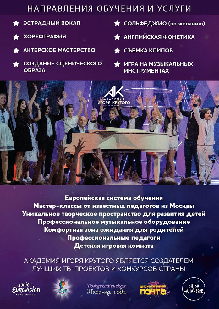 Дорогие друзья, с нетерпением сообщаем Вам радостную новость!!! 15 сентября в 14.00 в г. Кемерово состоится открытие Академии популярной музыки Игоря Крутого