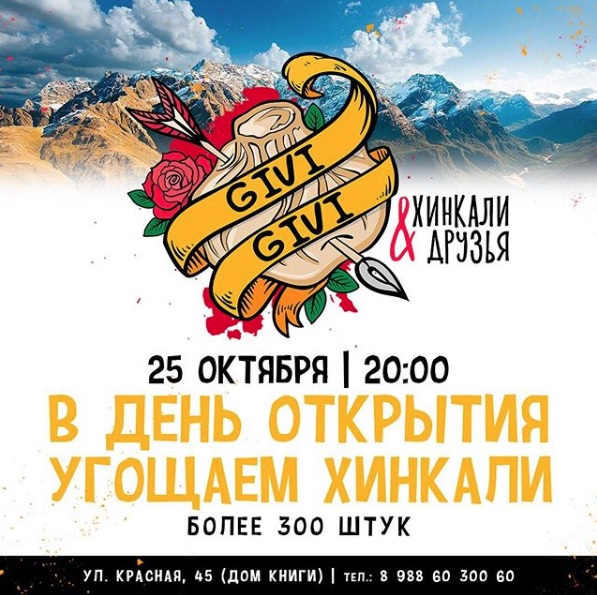 В пятницу, 25 октября, в 20:00 покажи репост афиши своему официанту и получи свою порцию хинкалей!