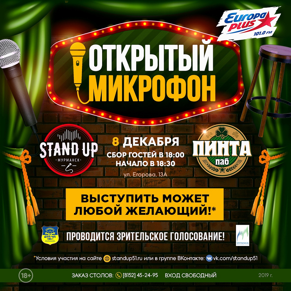 *Ознакомьтесь с условиями участия на сайте http://standup51.ru/openmic08122019