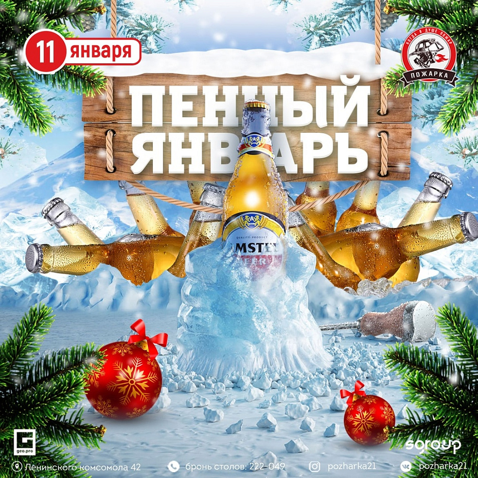 В эту субботу продолжим веселится, танцевать и выигрывать пенные призы на вечеринке ПЕННЫЙ ЯНВАРЬ.