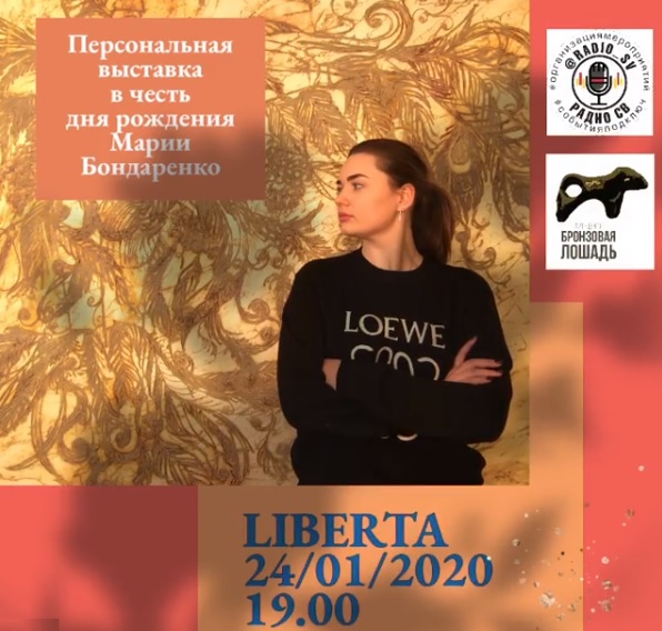 Каждая картина художника имеет свою историю и в каждую был вложен смысл. Они полны мистики и загадки. Техника написания картин - уникальна. Это выставка необычна тем, что является первой персональной выставкой молодого художника Марии Бондаренко в честь ее 21-летия. Для выставки «Libèrta» были отобраны самые лучшие работы, в которых вложена частичка души. Здесь каждый найдет свои ответы. Я приглашаю всех на открытие 24 января 2020 в 19.00 - это будет наш вечер