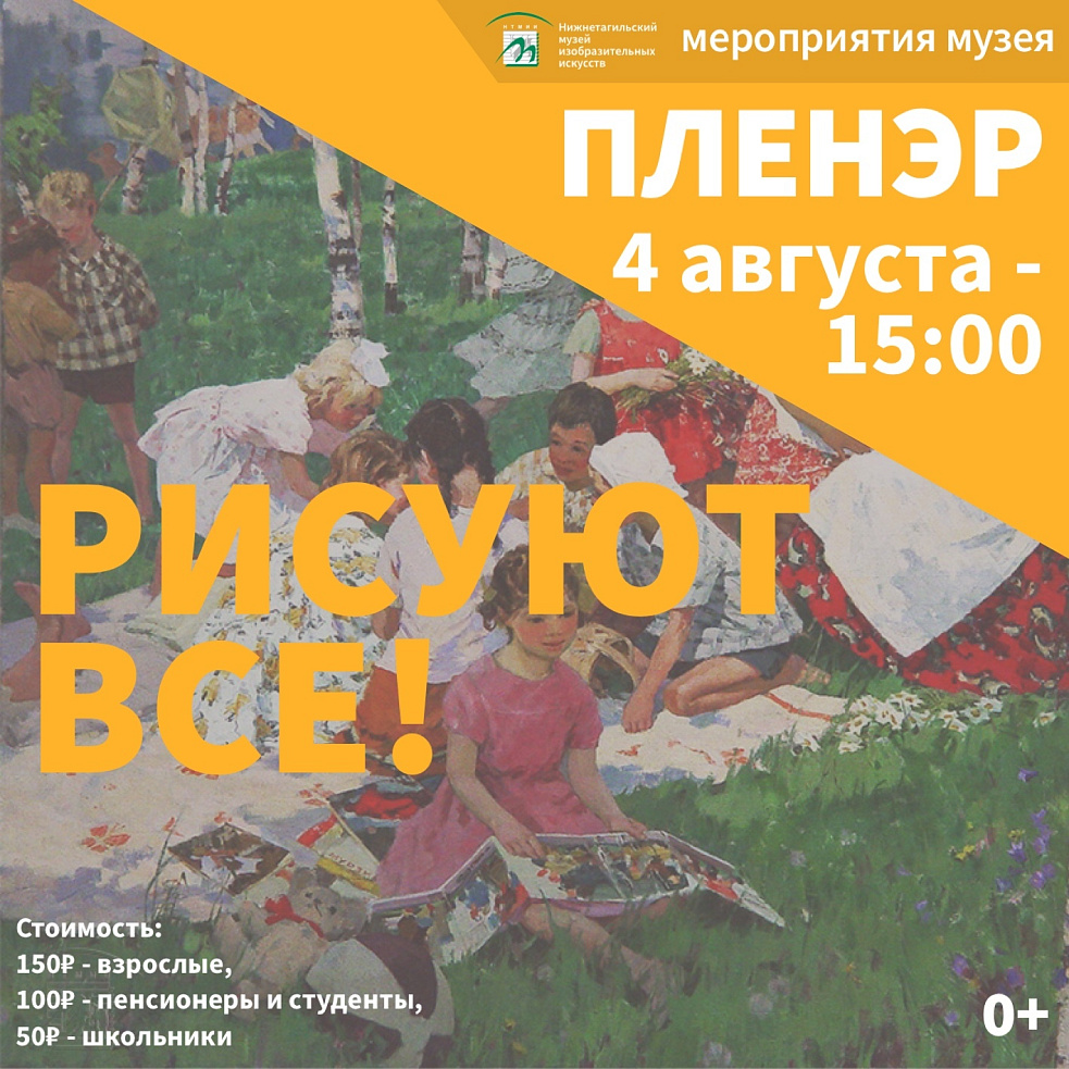 4 августа (воскресенье) в 15.00 приглашаем на ПЛЕНЭР В СКВЕРЕ Нижнетагильского музея изобразительных искусств.