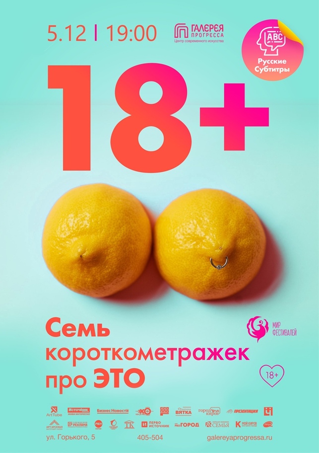 В ЦСИ «Галерея Прогресса» Кинопоказ короткометражных фильмов «18+»