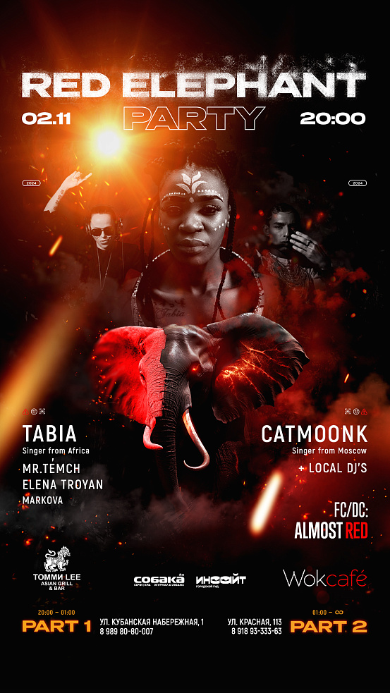 2 ноября в 20:00 в Краснодаре состоится знаковое событие — RED ELEPHANT PARTY, которое пройдет на двух площадках: ресторане «Томми Lee» и «Wok Cafe».