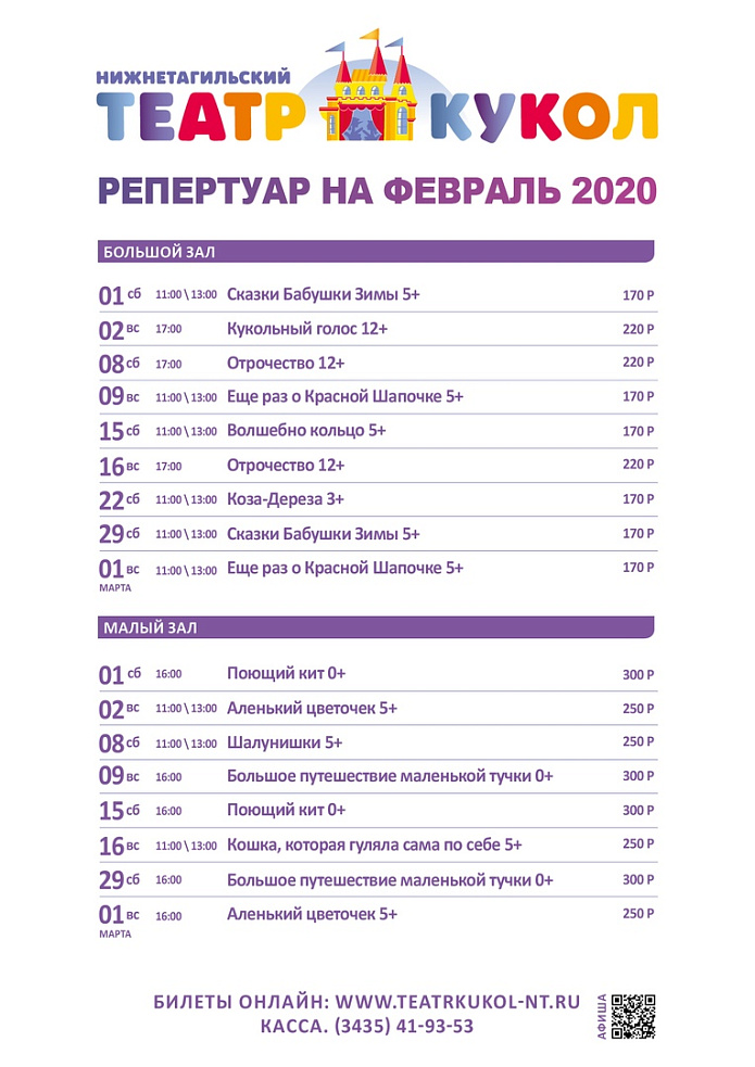 Нижнетагильский театр кукол открыл продажи билетов на февраль, март и апрель на сайте www.teatrkukol-nt.ru/poster/