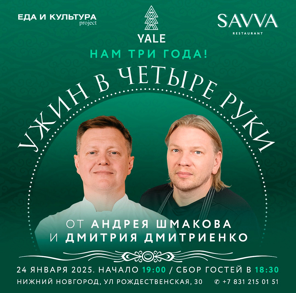 24 января Андрей объединится с Дмитрием Дмитриенко и командой YALE, чтобы приготовить особенный ужин в честь трехлетия ресторана.