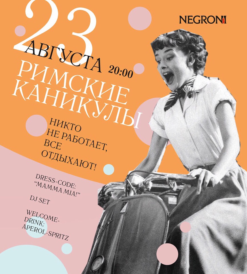 Сами превратим свою жизнь в Римские каникулы, нарядимся, будем танцевать, пробовать новые блюда от шефа и угощаться Аперолем!
