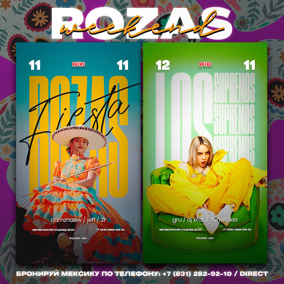 Встречаем горячие выходные традиционной Rozas Fiesta! Авторские коктейли, атрибутика солнечной Мексики, ну и куда же без зажигательных Ritmos Latinos до утра, что может быть лучше?