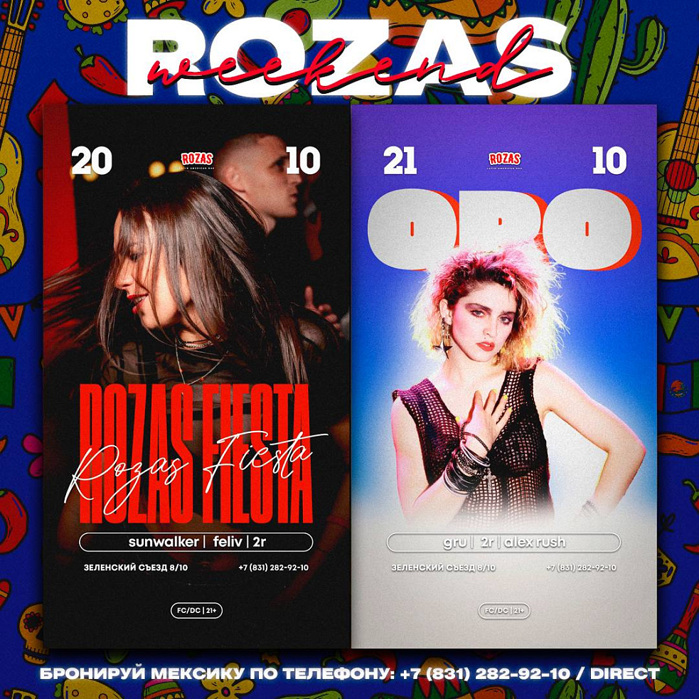Мексика - это то место, где абсолютно каждый может быть собой, где Вас встретят, напоят и накормят, место куда хочется возвращаться снова и снова. В пятницу по старым и добрым Мексиканским традициям устраиваем большую фиесту! Атмосфера солнечной Мексики, горячие сеньориты, текила и латиноамериканские ritmos от наших резидентов обеспечены.