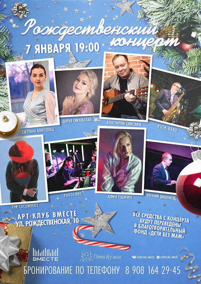 7 января на сцене арт-клуба "ВМЕСТЕ" с праздничным концертом выступят: