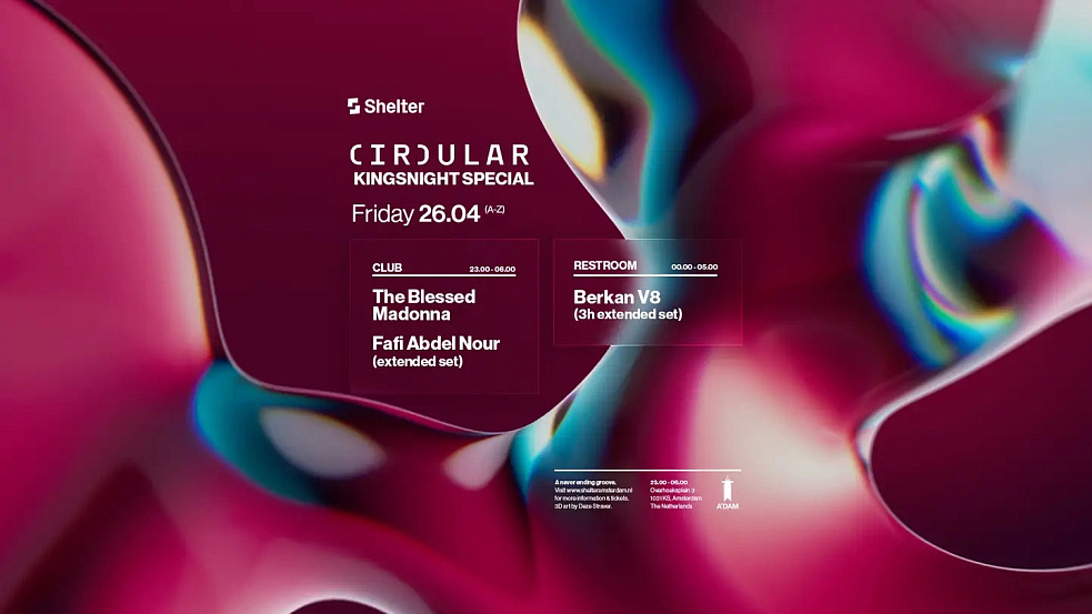 There is no better place to spend your Kingsnight this year! We are excited to host this night together with Circular, and invite none other than The Blessed Madonna and Fafi Abdel Nour to Shelter.