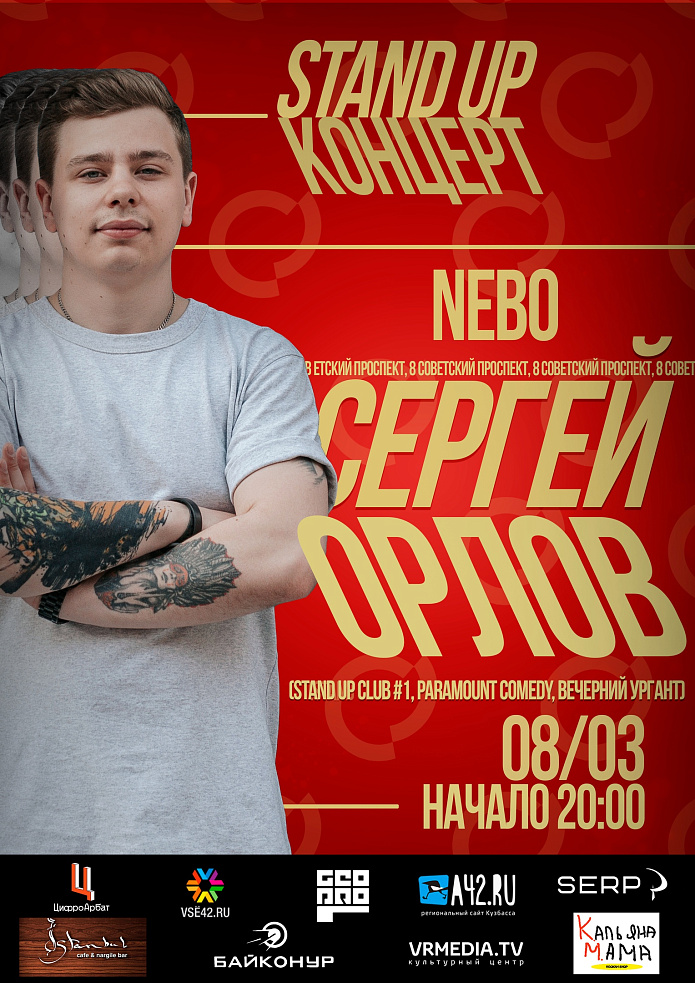 Сольный stand-up концерт Сергея Орлова - резидента московского «Stand Up Club #1», участника шоу «Вечерний Ургант», «Стендап на Paramount Comedy», «22 комика» и других громких проектов.