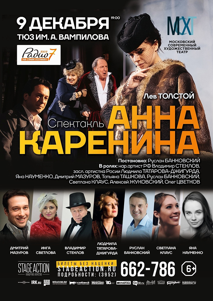 Этот спектакль был создан весной 2017 года. Он является настоящей классической постановкой с главной сюжетной линией Анны и Вронского. И среди его участников — лишь самые знаменитые и популярные актёры сегодняшнего российского кинематографа и театра.