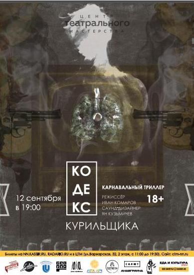 Спектакль «Кодекс курильщика» можно увидеть впервые в новом театральном сезоне в Центре театрального мастерства 12 сентября (чт) в 19:00.