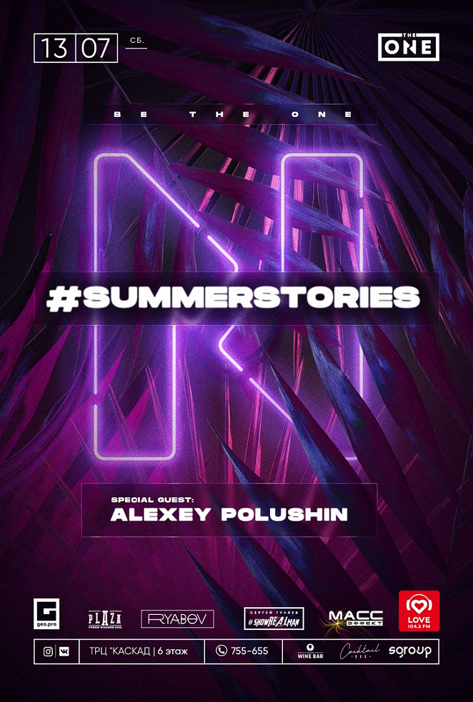 Летние истории приближаются к своему пику, а наши вечеринки становятся только жарче. Мы продолжаем серию знакомств с яркими клубными личностями — в эту ночь на нашей сцене компанию нашему MC Ryabov составит один из лучших МС соседней республики Alexey Polushin. Без сомнений — вы будете в восторге от этого импровизированного, но очень харизматичного дуэта