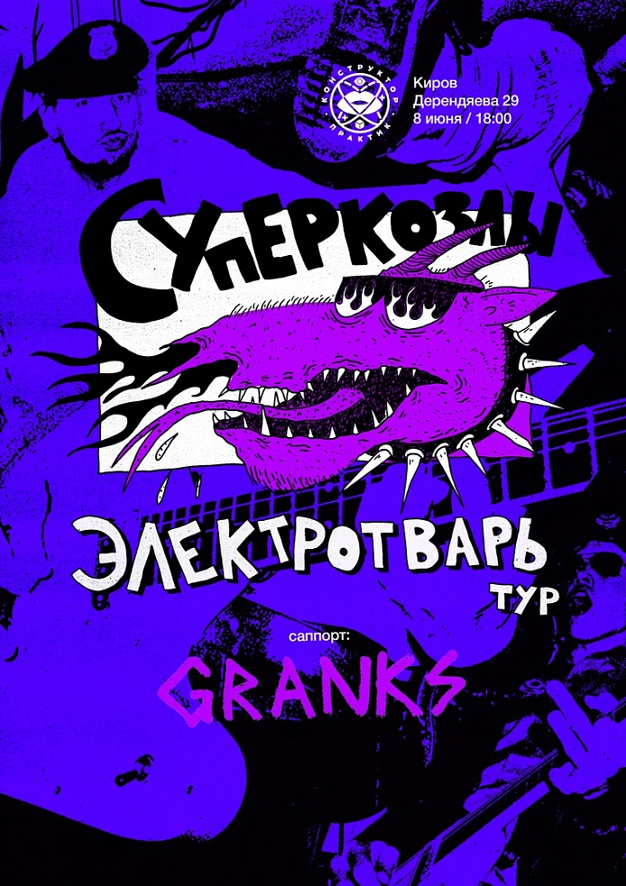 Самоназваные звёзды бензинового рок-н-ролла кончают в Кирове свой тур "Электротварь", а трио гранжевых лунатиков наконец-то презентуют свой альбом "Меня жрёт ад".