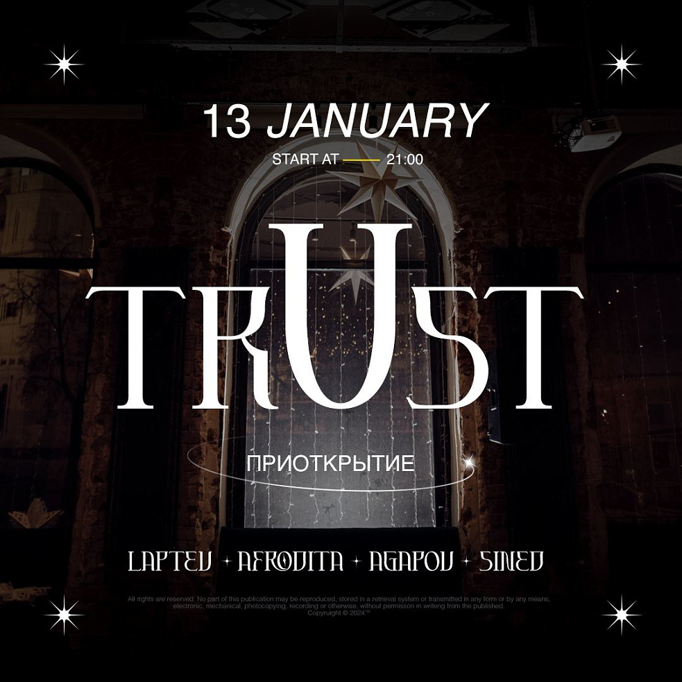 13 января приоткрываем тайну нового пространства в нашем здании фирменной вечеринкой TRUST