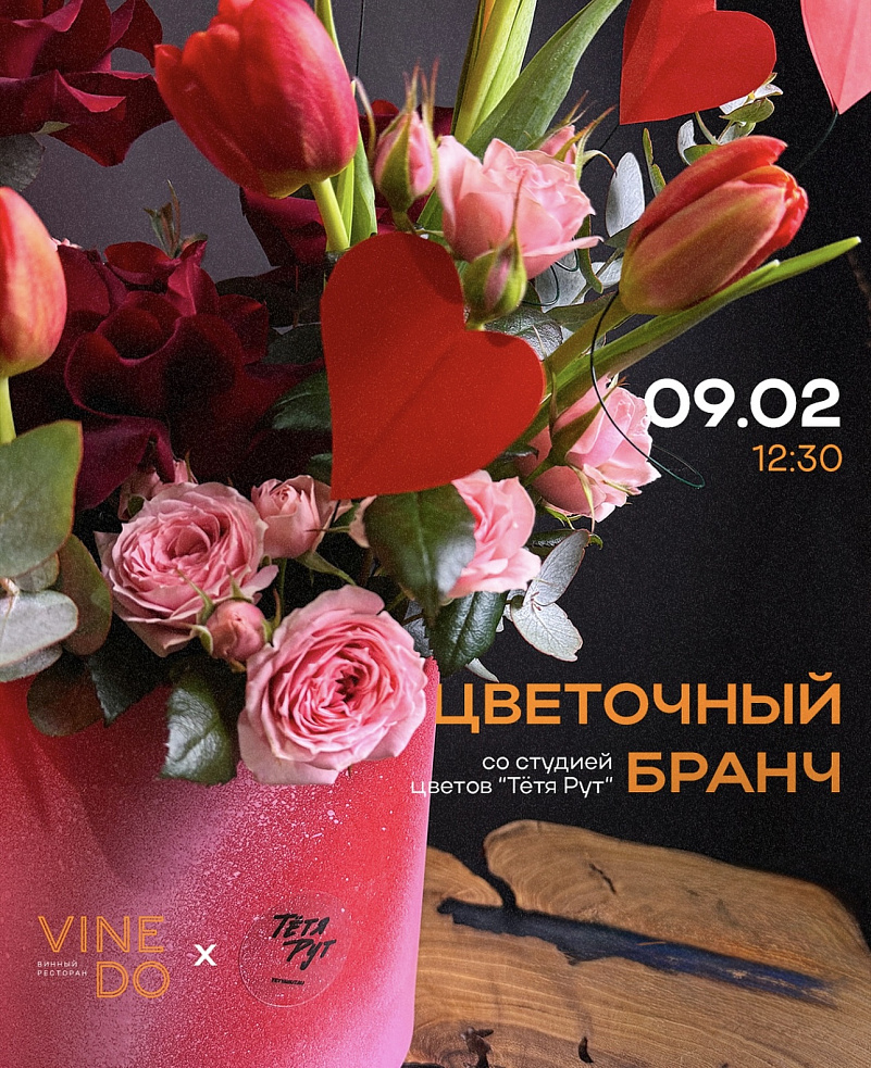 9 февраля встречаемся в винном ресторане "Vinedo" на самом красивом цветочном бранче от студии Тётя Рут.