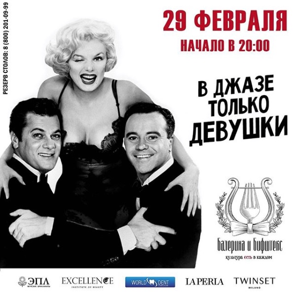 29 февраля ресторан «Балерина и Бифштекс» имеет честь пригласить вас на музыкально-гастрономический event «В джазе только девушки».