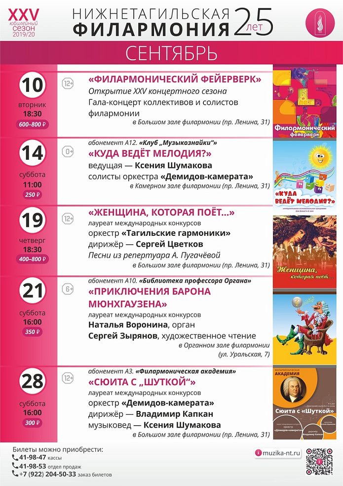Некоторые из сентябрьских концертных программ входят в абонементные циклы.