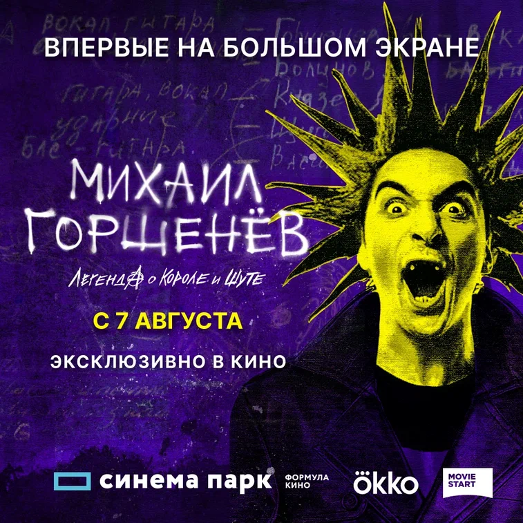 С 7 августа Сеть кинотеатров «Синема Парк» и «Формула Кино» приглашает на эксклюзивную премьеру документального блокбастера «Михаил Горшенёв. Легенда о Короле и Шуте». Специальные показы пройдут в день 50-летнего юбилея музыканта.