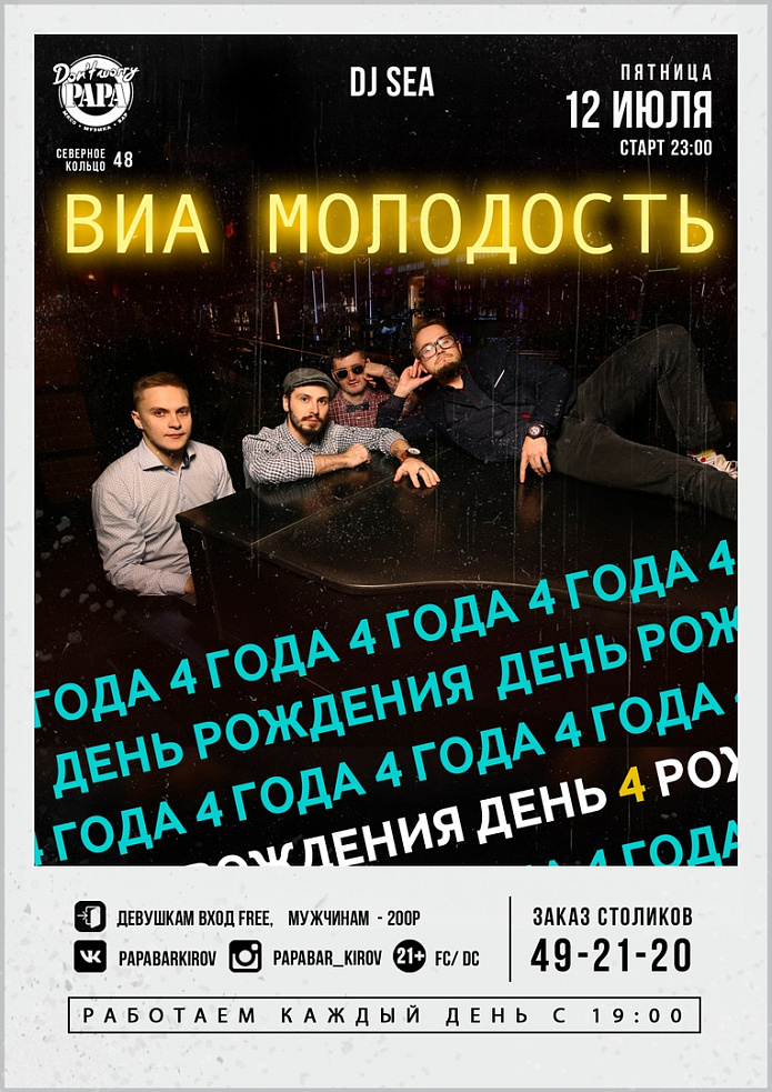 Отмечаем ДР у любимых ВИА МОЛОДОСТЬ. 4 годика, скоро в школу пойдут, а мы, в свою очередь, поздравляем их всем баром.