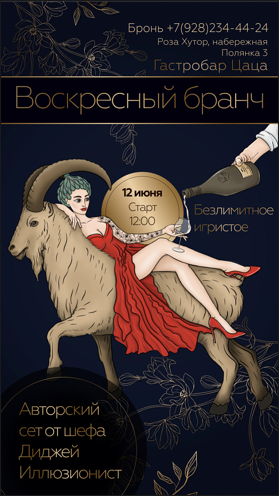 Плюс одна замечательная идея в праздничные выходные. Приглашаем на воскресный бранч с безлимитным игристым и авторским сетом от шефа в гастробар Цаца! Веселитесь с друзьями и близкими в живописном месте на курорте Роза Хутор, где вас ждут танцы от DJ, фантастический иллюзионист и игривое настроение.