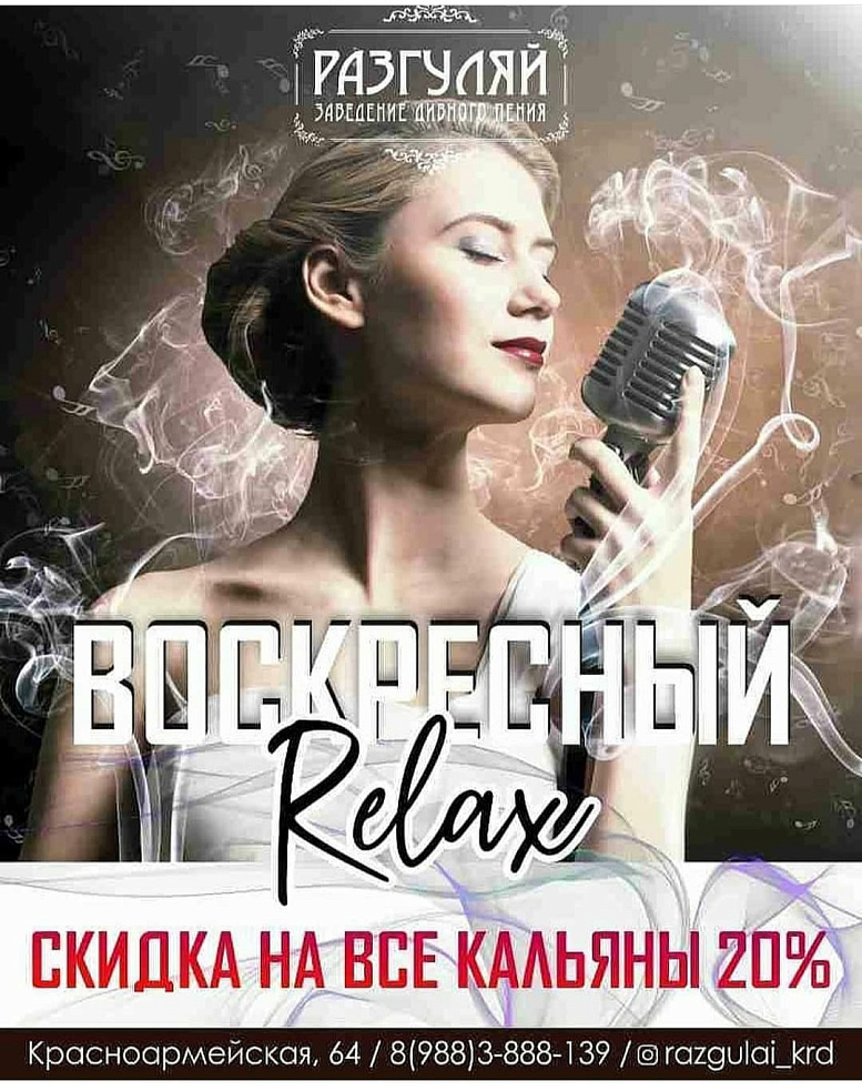 Прекрасная музыка,вкусные кальяны . Споём от души.от души отдохнем.всех сегодня ждём в гости.