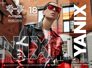 Несмотря на то, что YANIX уже давно в деле, его новые треки с каждым разом всё интереснее и свежее. Попасть на его концерт должен каждый, ведь это отличная возможность затусить с любимым исполнителем и окунуться в особенную атмосферу его лайва. Выступления Яниса это не просто исполнение треков в живую, он делится со своей публикой невероятной энергетикой, которая заряжает и остается в памяти надолго! Покупай билеты себе и своим друзьям, 18 октября — дата, которая предназначена того, чтобы пойти на выступление Яни в «Platinum»!
