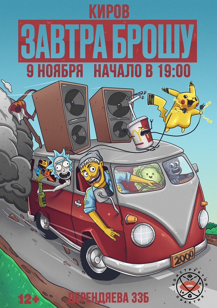 "ЗАВТРА БРОШУ" едут в Киров с долгожданным сольным концертом! Парни представят свой новый альбом, который отличается от других работ своей концептуальностью, неизменно сохраняя искренность, энергию и безудержную подачу. Эта осень будет по настоящему жаркой!