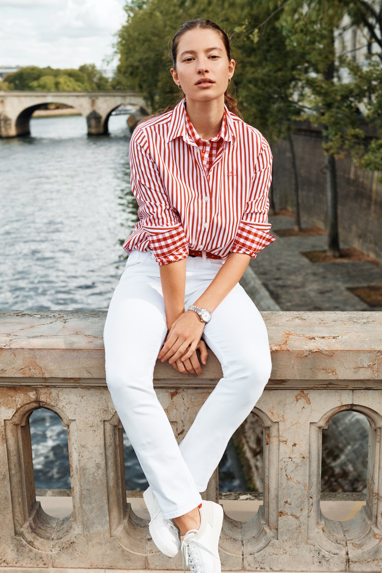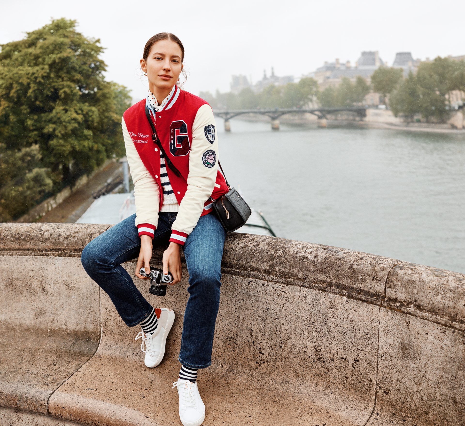 Первая часть коллекции вдохновлена Парижем и включает в себя вещи для насыщенной жизни в городе и для современного офиса. Куртка леттерман и регбийка GANT, дополненные патчами с университетской символикой,относятся к американскому спортивному стилю, но мы предлагаем носить их с французскими вещами в стиле преппи: джемпером в сине-белую полоску и рубашками в горох. В женской коллекции современная одежда для офиса соседствует с женственными блузами и платьями в стиле идеальной Франции, вдохновленной спортивной одеждой.