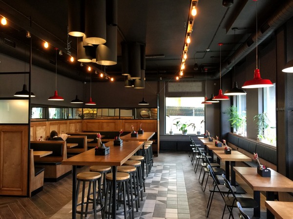 Дизайн бургерной выполнен Татьяной Шапрановой (дизайн-студия «Мёд»). Татьяну мы знаем по интерьерам пространств бизнес-кафе «Sky18», кондитерской «Кусочек счастья» в БЦ Саммит и кафе здорового питания «Готово» в ТЦ Успенский и др.