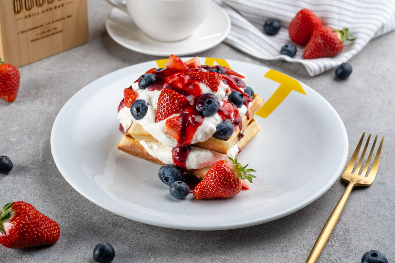 Вафли с яйцом бенедикт и беконом – 290 рублей