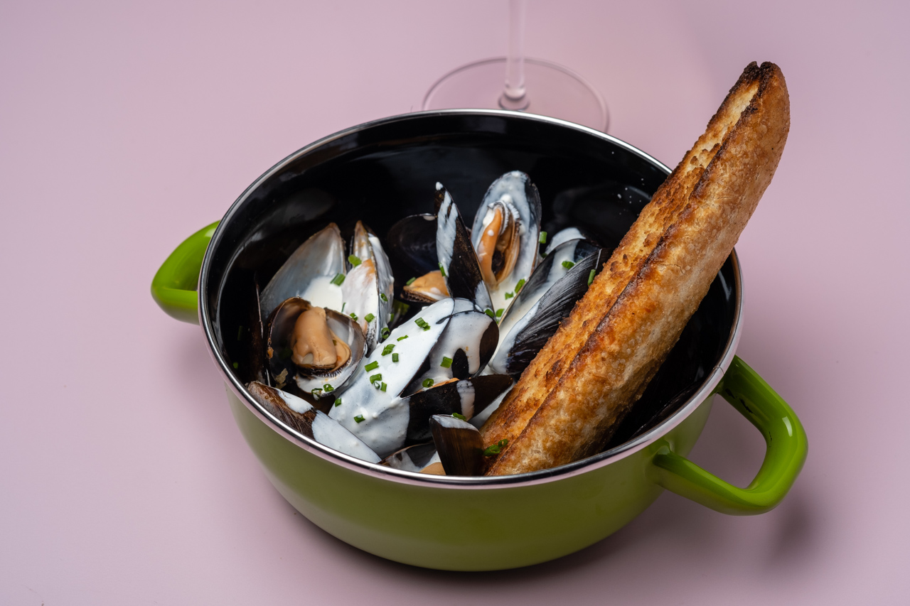 Мидии в пряном соусе из вина и летних томатов – 490 рублей