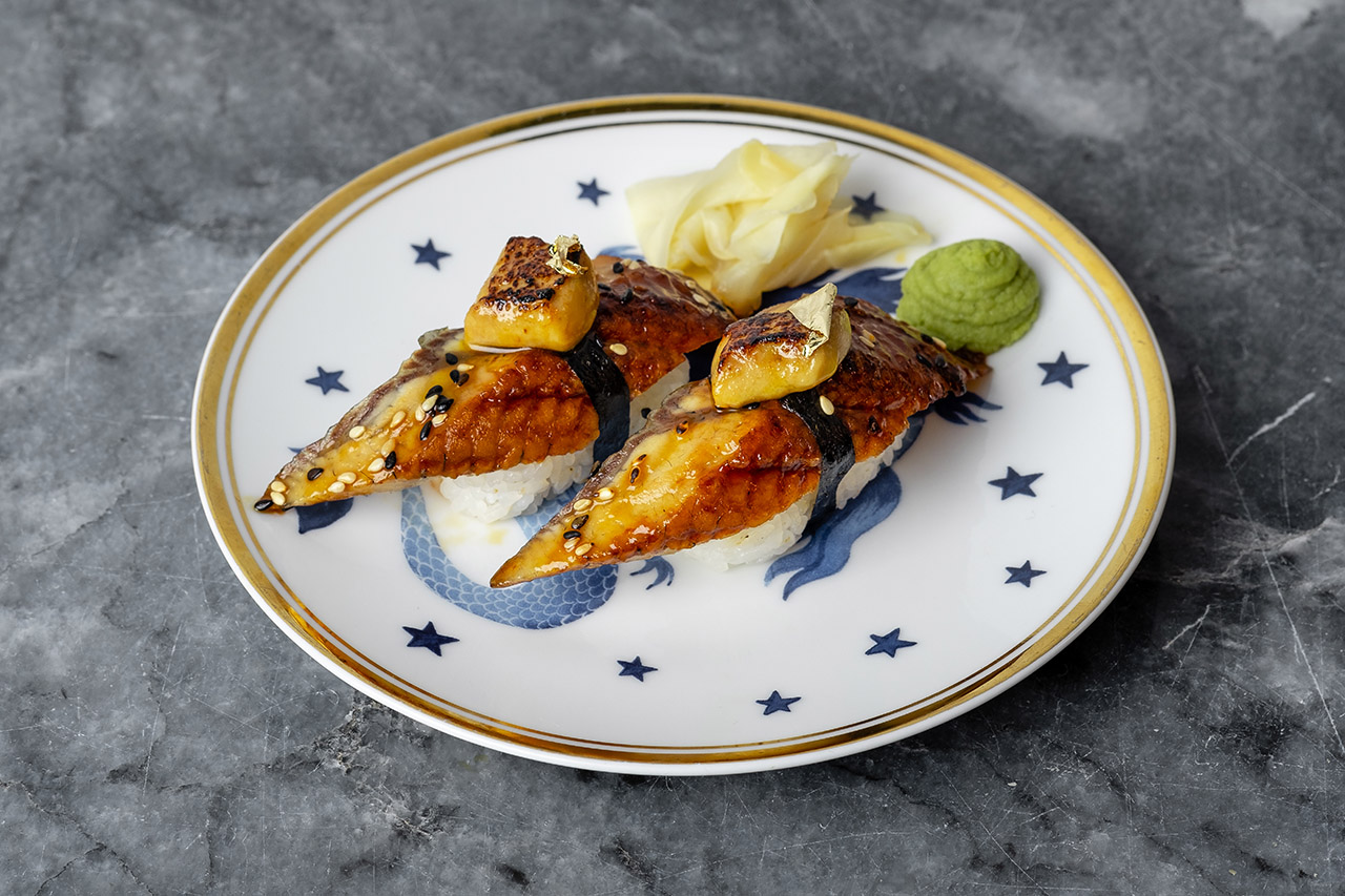 Абури-суши с лососем, икрой и фиалкой – 390 рублей