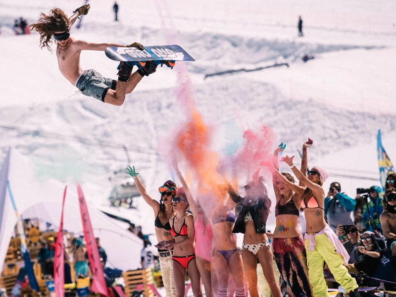 от музыкального партнера JBL – Fun контест JBL Push The Button на максимальный вылет среди сноубордистов. Райдеры будут вылетать с пирамиды напротив телескопической линейки с кнопкой и пытаться дотронуться до нее сноубордом. Правила просты: побеждает тот, кто выпрыгнул