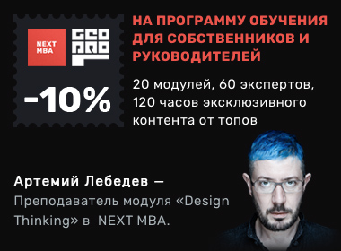 По стоимости, мы постарались сделать NEXT MBA доступной даже для индивидуального предпринимателя. Для всех читателей «…….» действует скидка 10%.