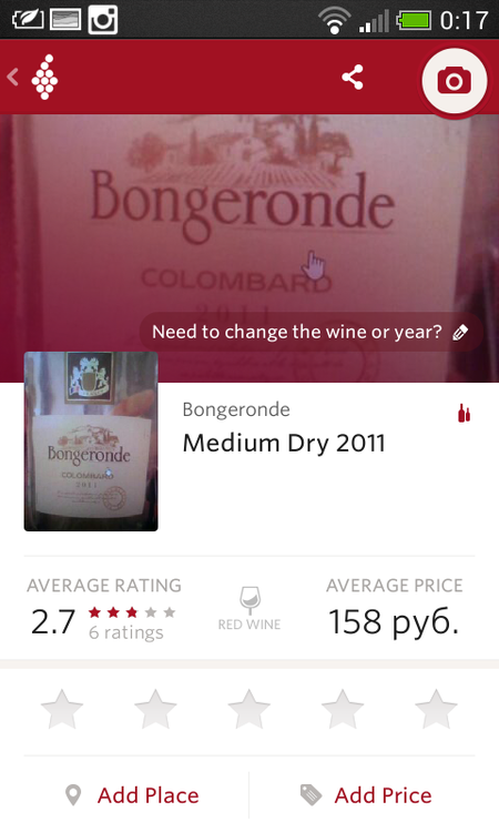 составляет 2 миллиона экземпляров, и продолжает пополняться - в основном, конечно, за счет умеренно пьющих пользователей. Сканер распознал даже этикетку, сфотографированную с экрана, поэтому приложению в нашем списке присваиваем статус первого номера.