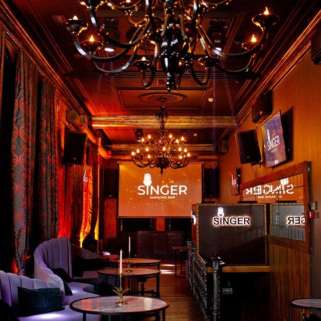 Качественное музыкальное оборудование, многотысячный репертуар песен системы AST, профессиональные музыканты и бек-вокалисты позволят каждому почувствовать себя звездой большой сцены. Не ждать своей очереди и провести время исключительно в кругу близких можно, расположившись в небольшой вип-комнате на 20 человек, а желающих сорвать бурные аплодисменты большой аудитории просим проследовать в общий зал.
