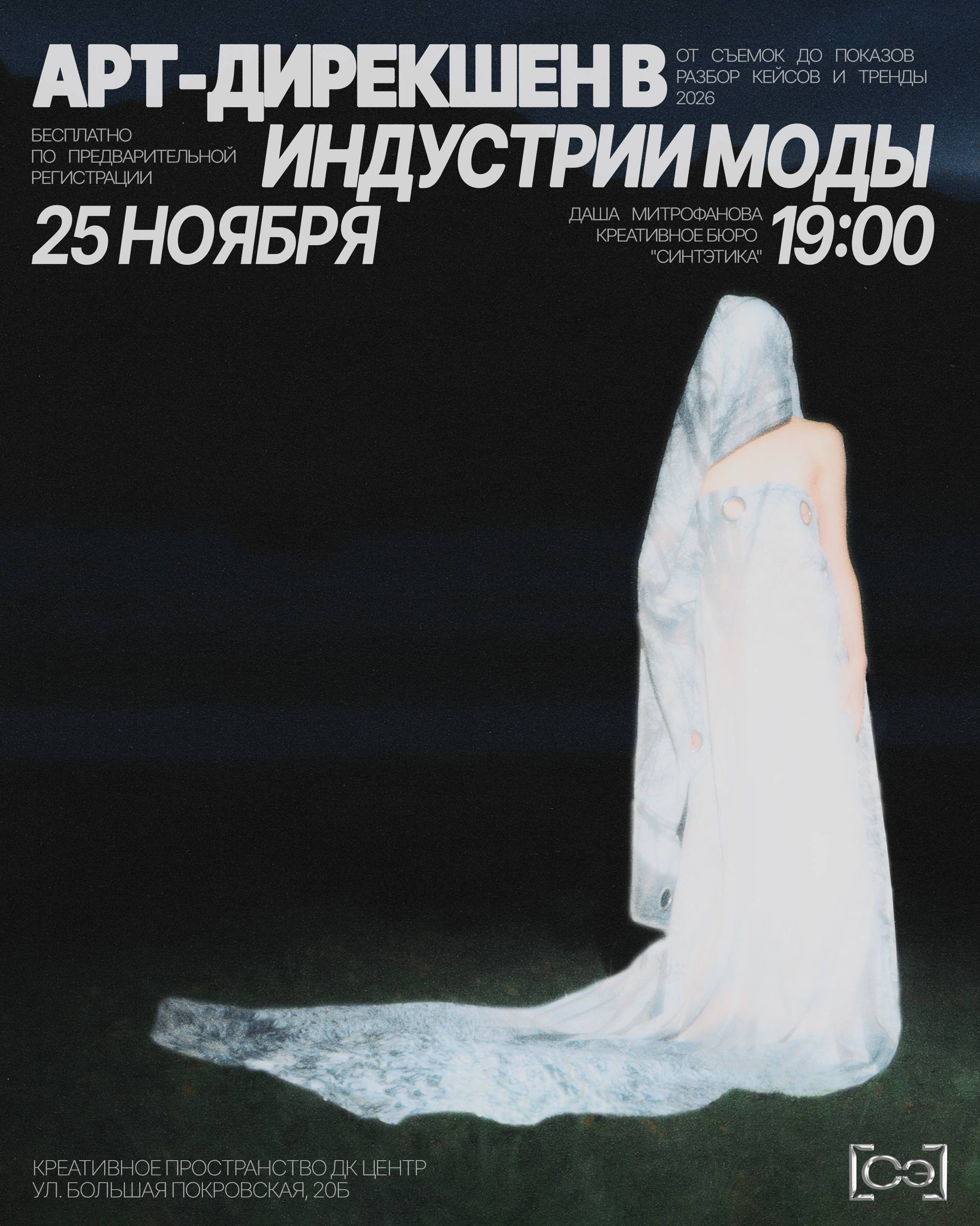 25 ноября пройдет лекция «Арт-дирекшен в индустрии моды: от съемок до показов. Разбор кейсов и тренды 2026» от основателя креативного бюро «Синтэтика» и фэшн-стилиста Даши Митрофановой.