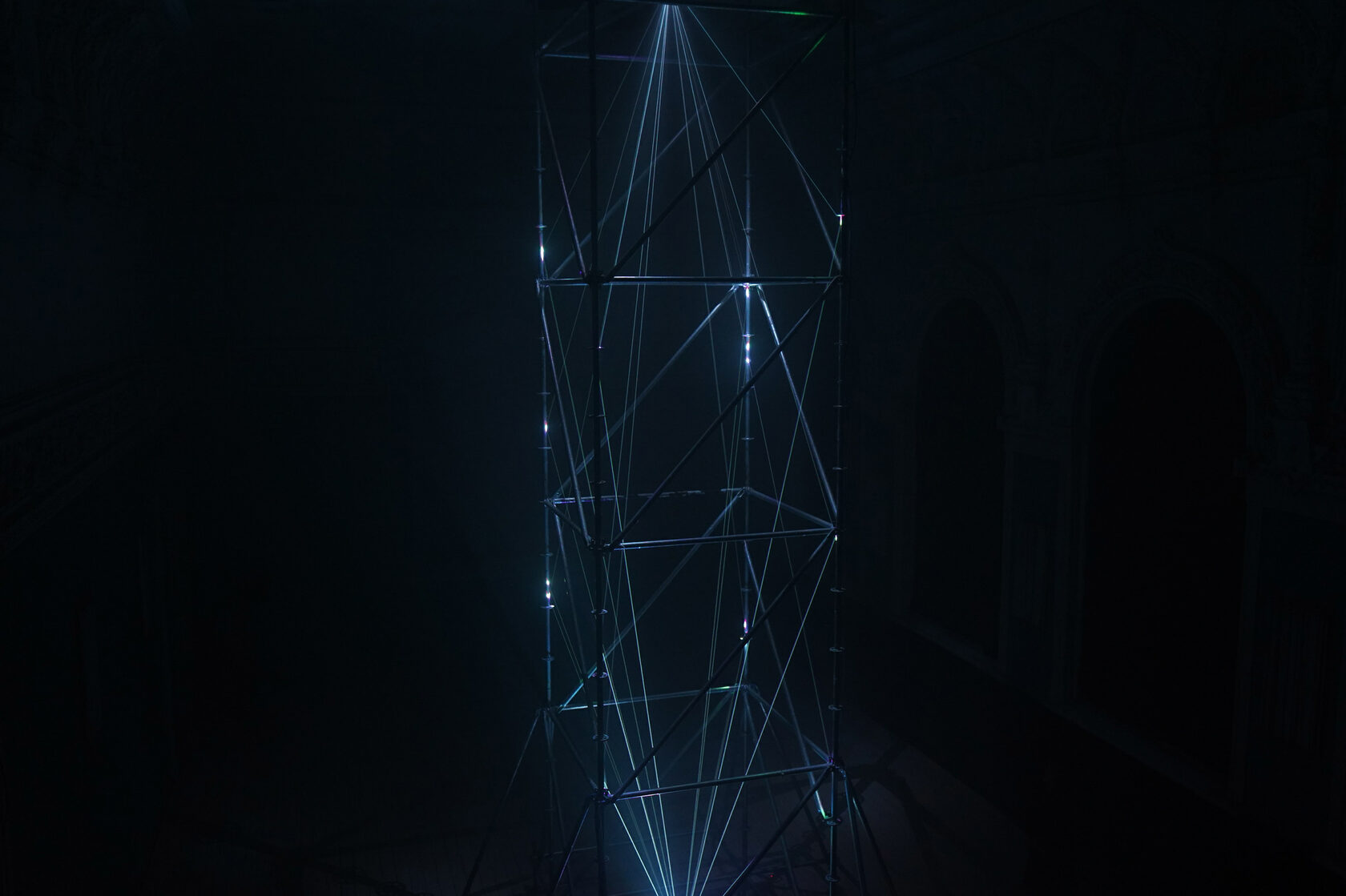 ENCAGED — заключенная в клетку аудиовизуальная инсталляция с высокой вертикальной композицией. Образ инсталляции формируется в условиях искусственных ограничений. Авторы намеренно сужают пространство, чтобы внутри него создать эмоциональный опыт максимальной глубины.