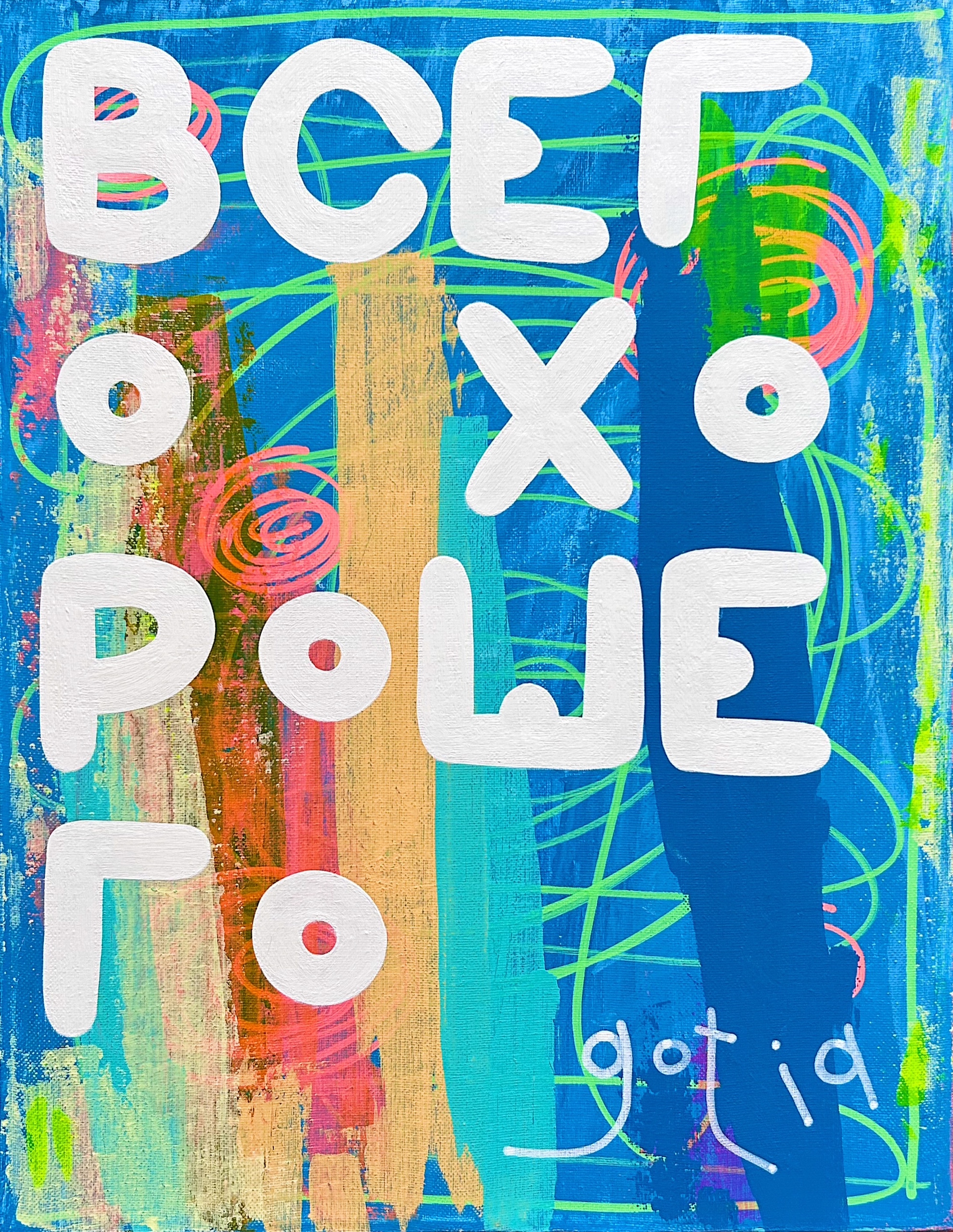 Стиль Gotia — это совмещение двух самых популярных направлений самовыражения в наше время: через яркие цвета и абстракции, а также через тексты в социальных сетях, где люди делятся своими мыслями и чувствами. Изначально холст приобретает абстрактный фон, играющий с настроением зрителя. Затем получает свой индивидуальный текст, который относится к повседневному быту и каждым человеком может быть воспринят по-своему.