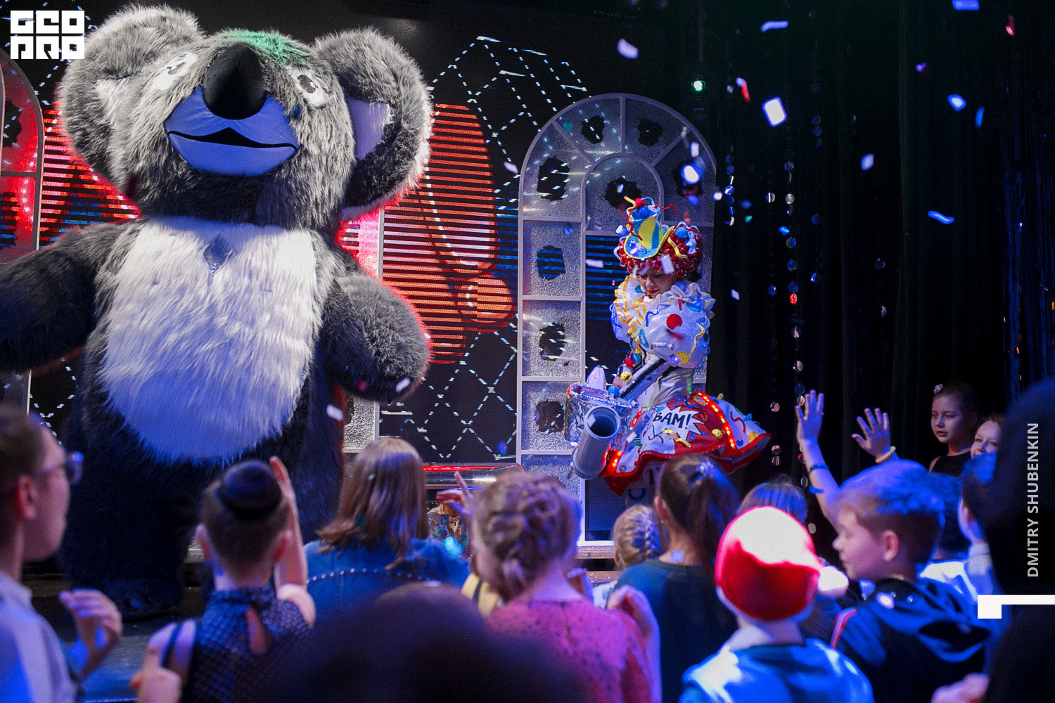 Конфетти шоу с трёх метровой коалой