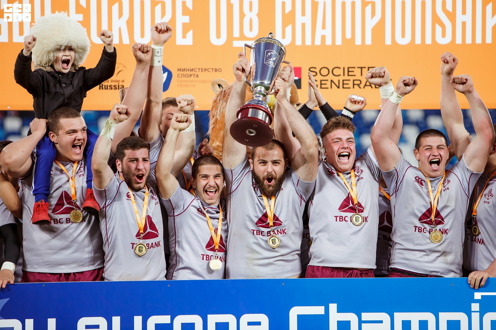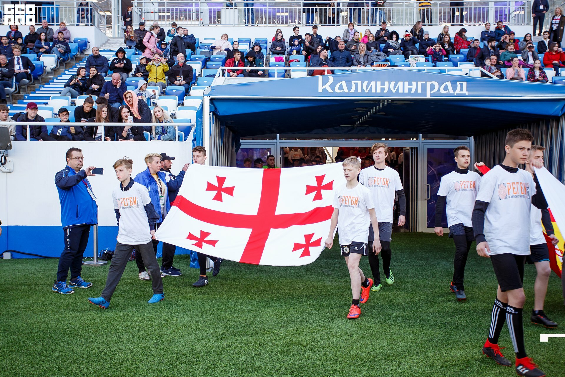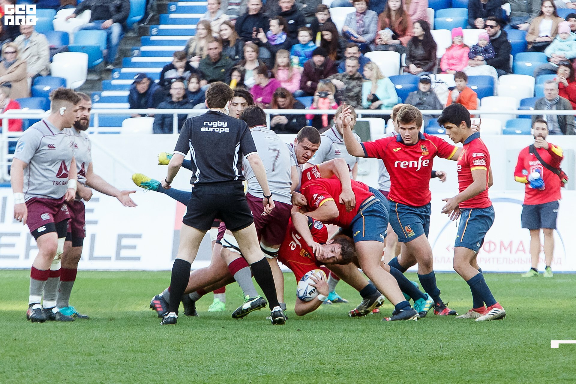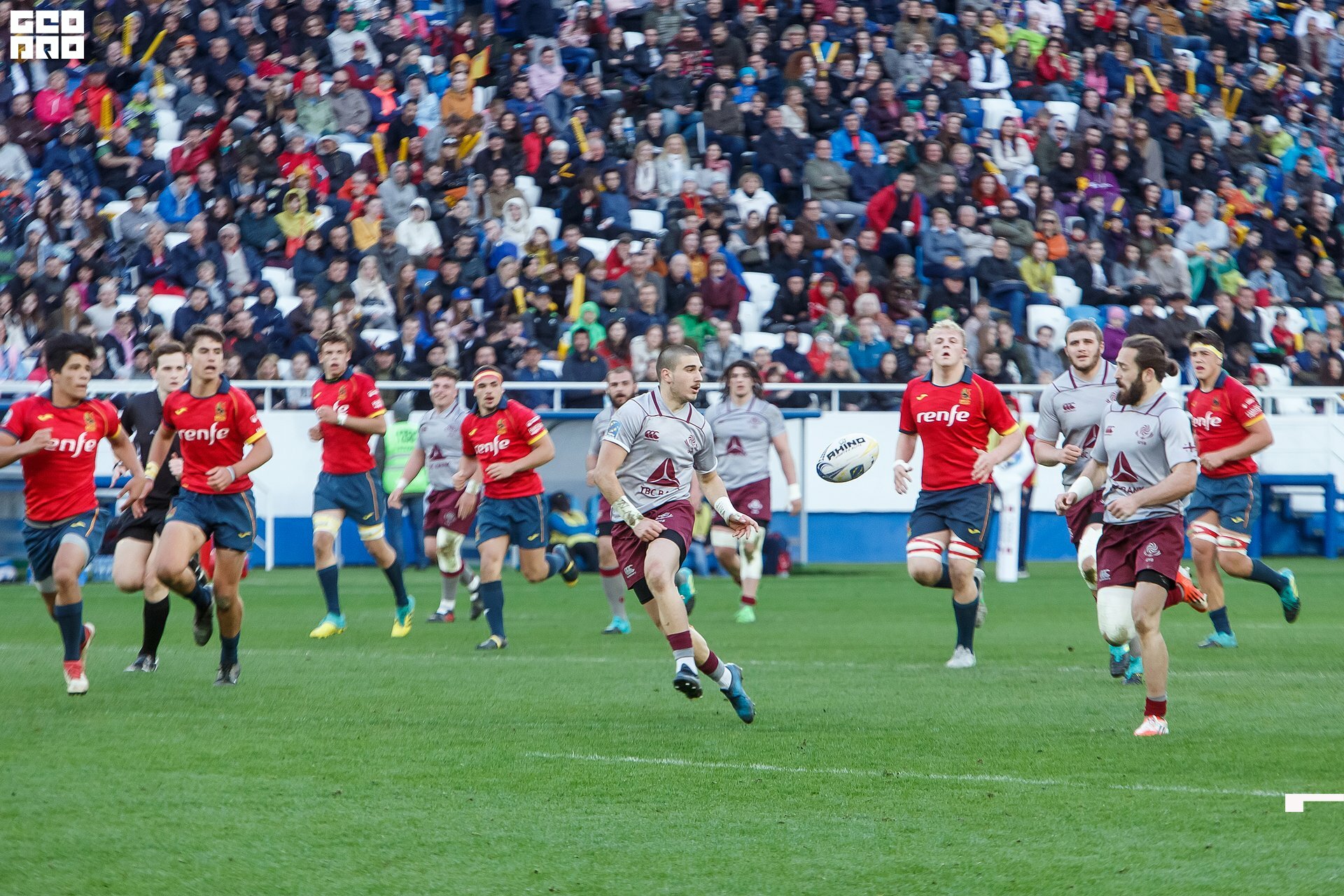 Second and final game of the day was set to become a record-breaker. Witnessed by an astounding 9700 spectators, the match turned out to be the most attended in history of U18 Rugby Championships. Almost ten thousand people including the President of Rugby Europe Octavian Morariu and the Govenor of Kaliningrad Region Anton Alikhanov saw the team of Georgia defeating Spain in a hard but rewarding battle (20:10).