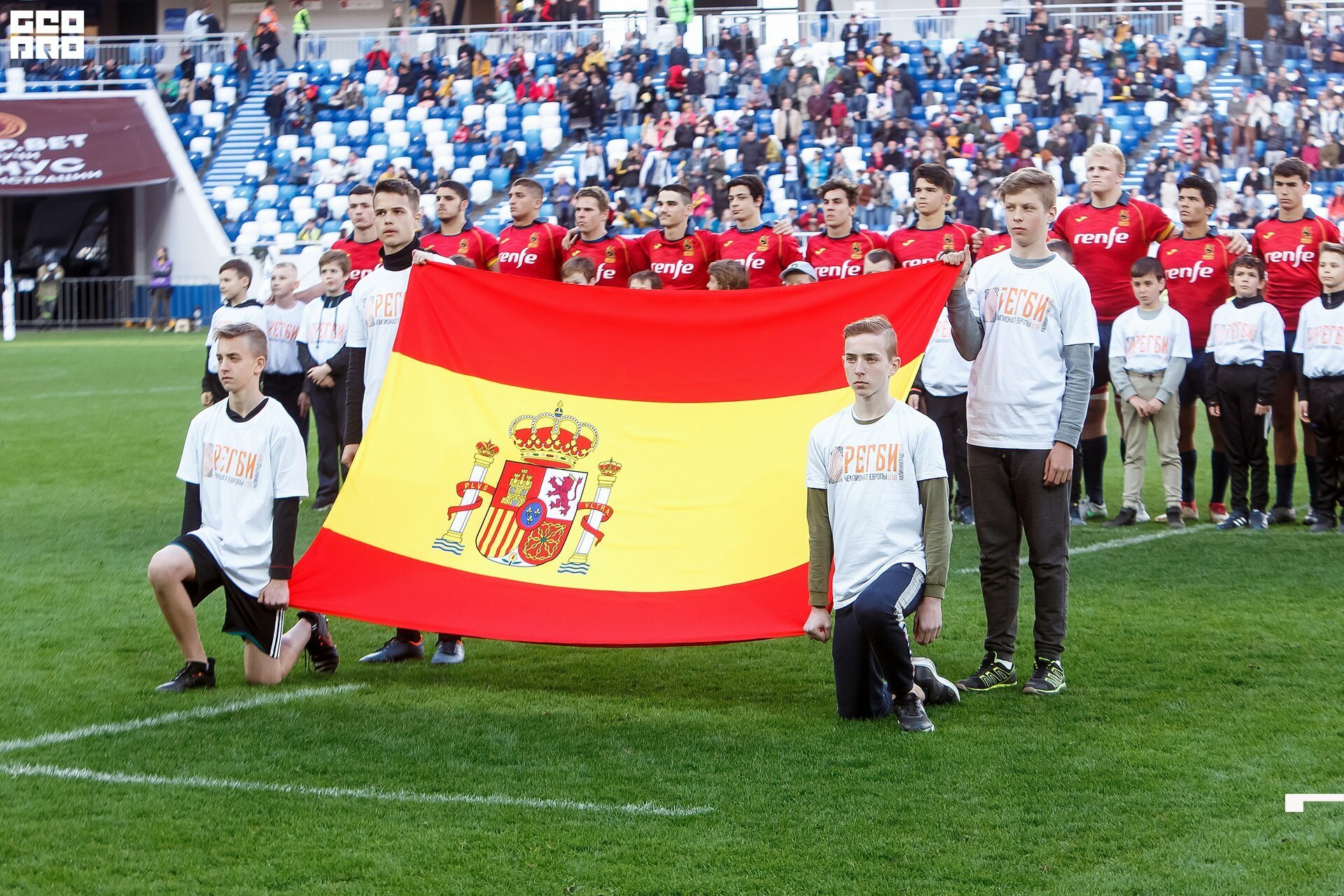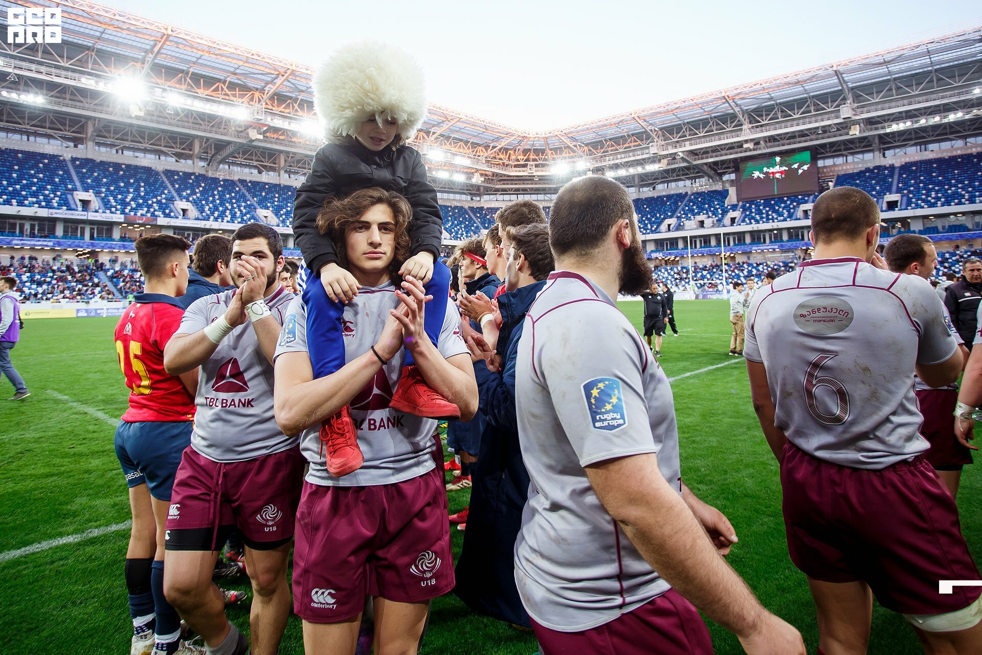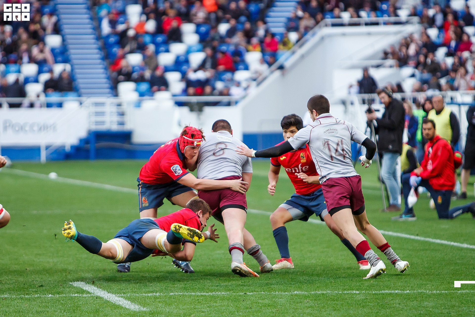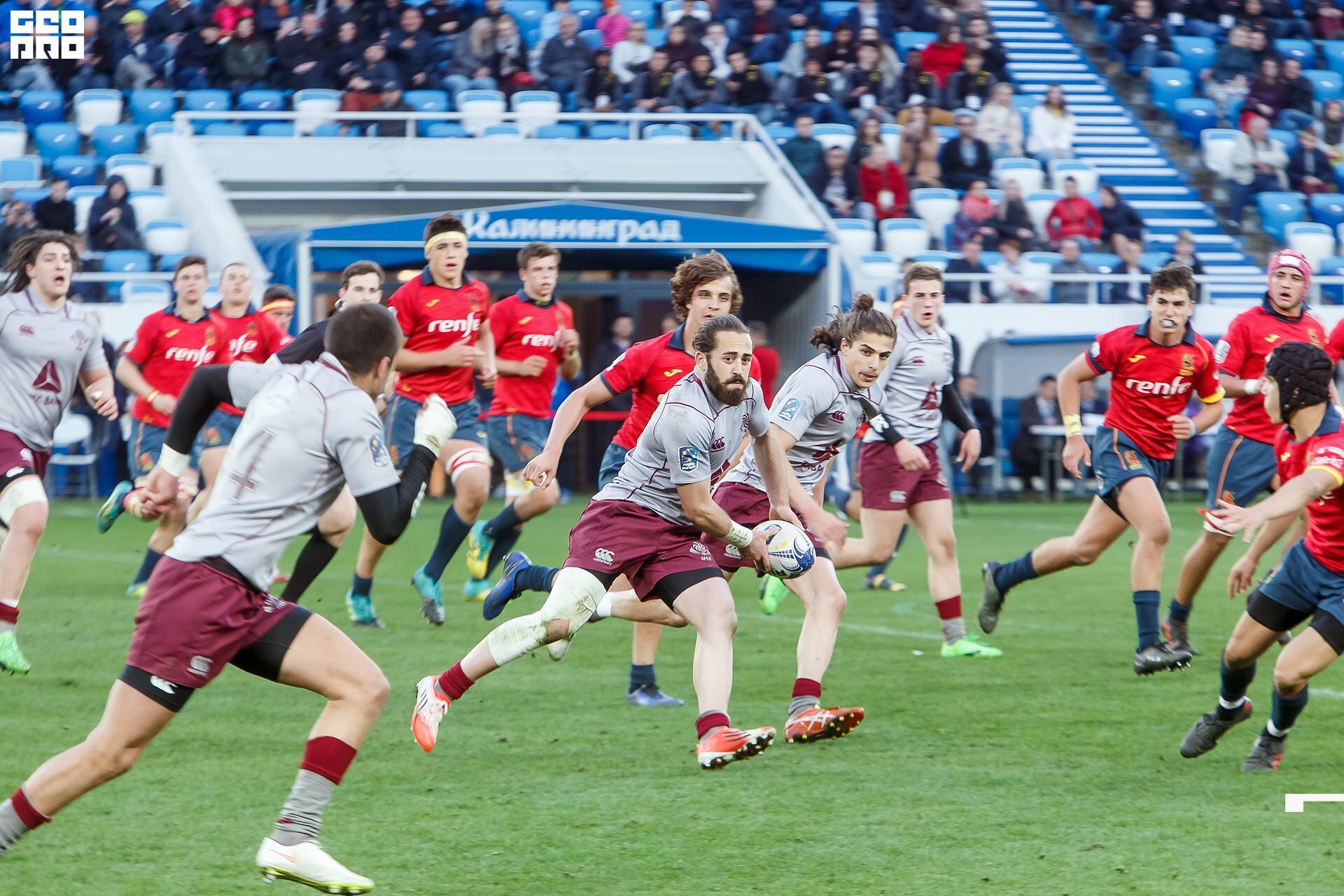 Second and final game of the day was set to become a record-breaker. Witnessed by an astounding 9700 spectators, the match turned out to be the most attended in history of U18 Rugby Championships. Almost ten thousand people including the President of Rugby Europe Octavian Morariu and the Govenor of Kaliningrad Region Anton Alikhanov saw the team of Georgia defeating Spain in a hard but rewarding battle (20:10).