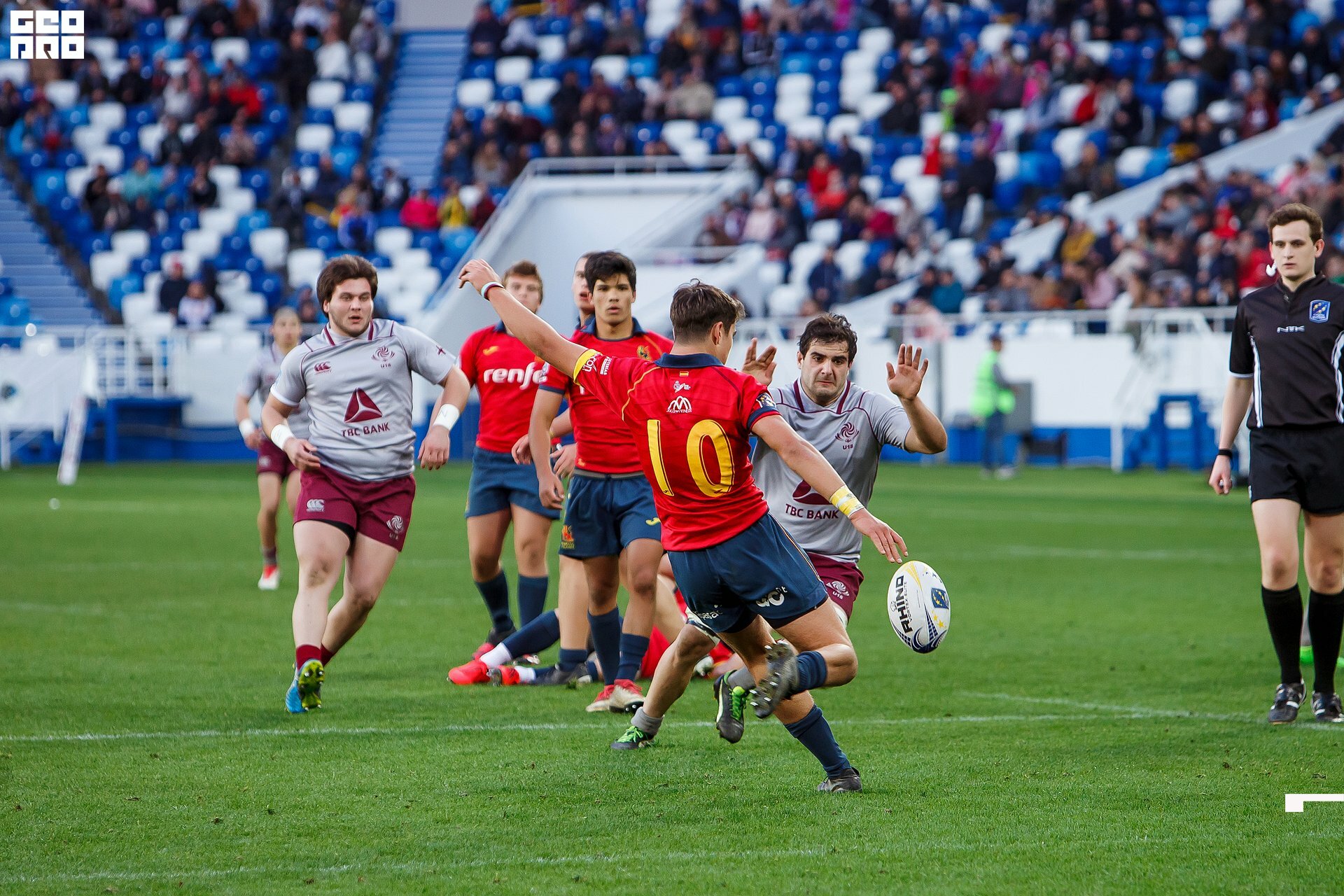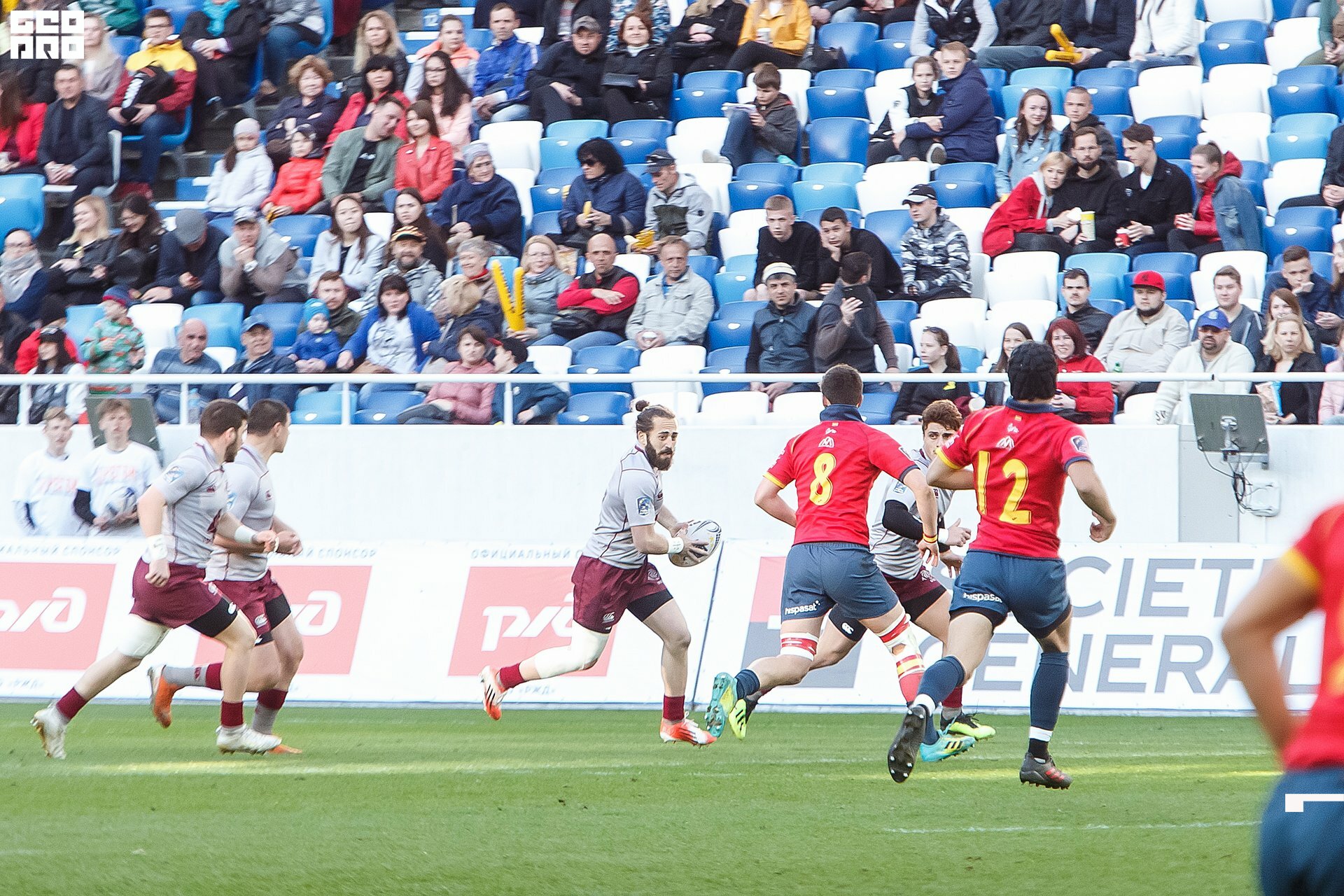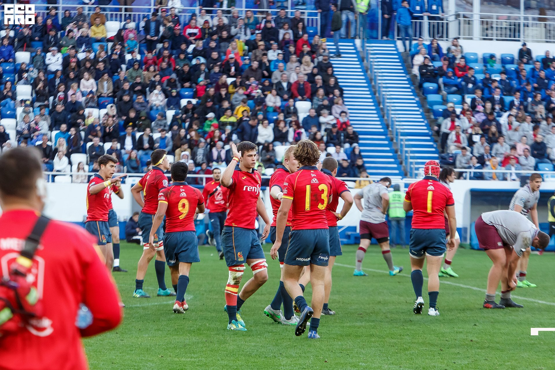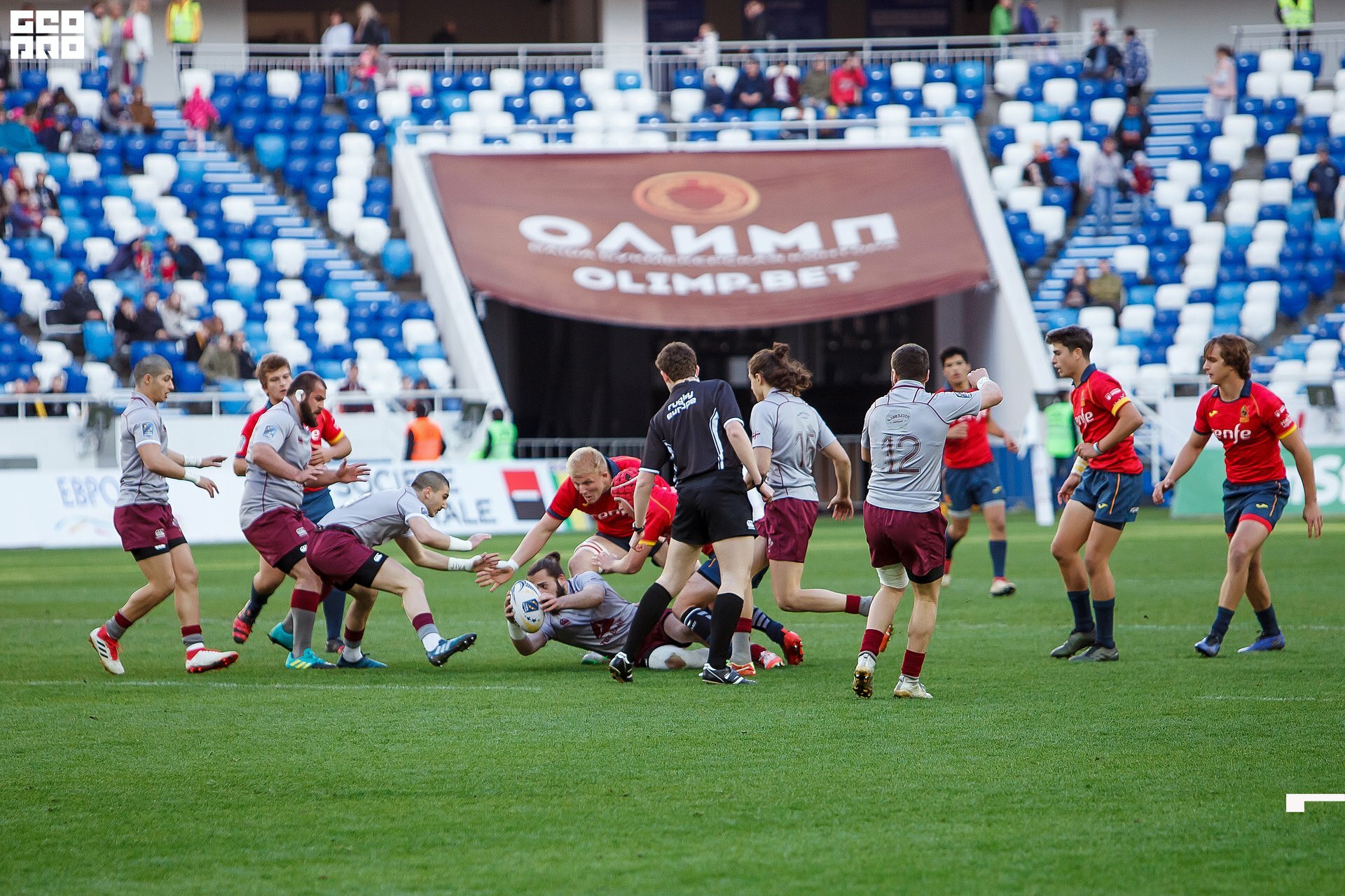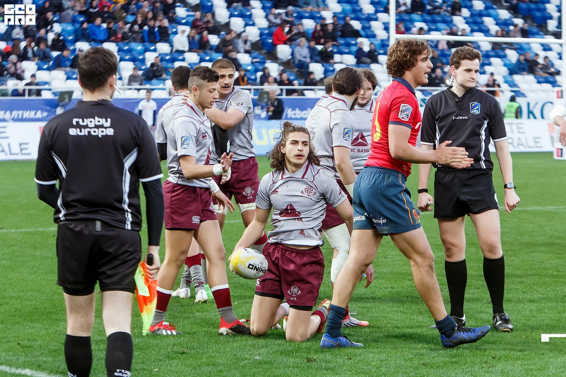 Second and final game of the day was set to become a record-breaker. Witnessed by an astounding 9700 spectators, the match turned out to be the most attended in history of U18 Rugby Championships. Almost ten thousand people including the President of Rugby Europe Octavian Morariu and the Govenor of Kaliningrad Region Anton Alikhanov saw the team of Georgia defeating Spain in a hard but rewarding battle (20:10).