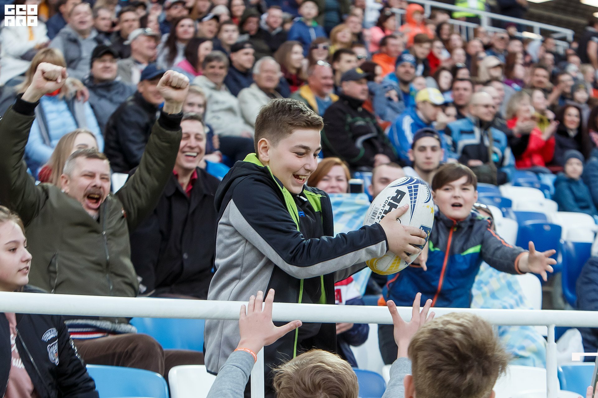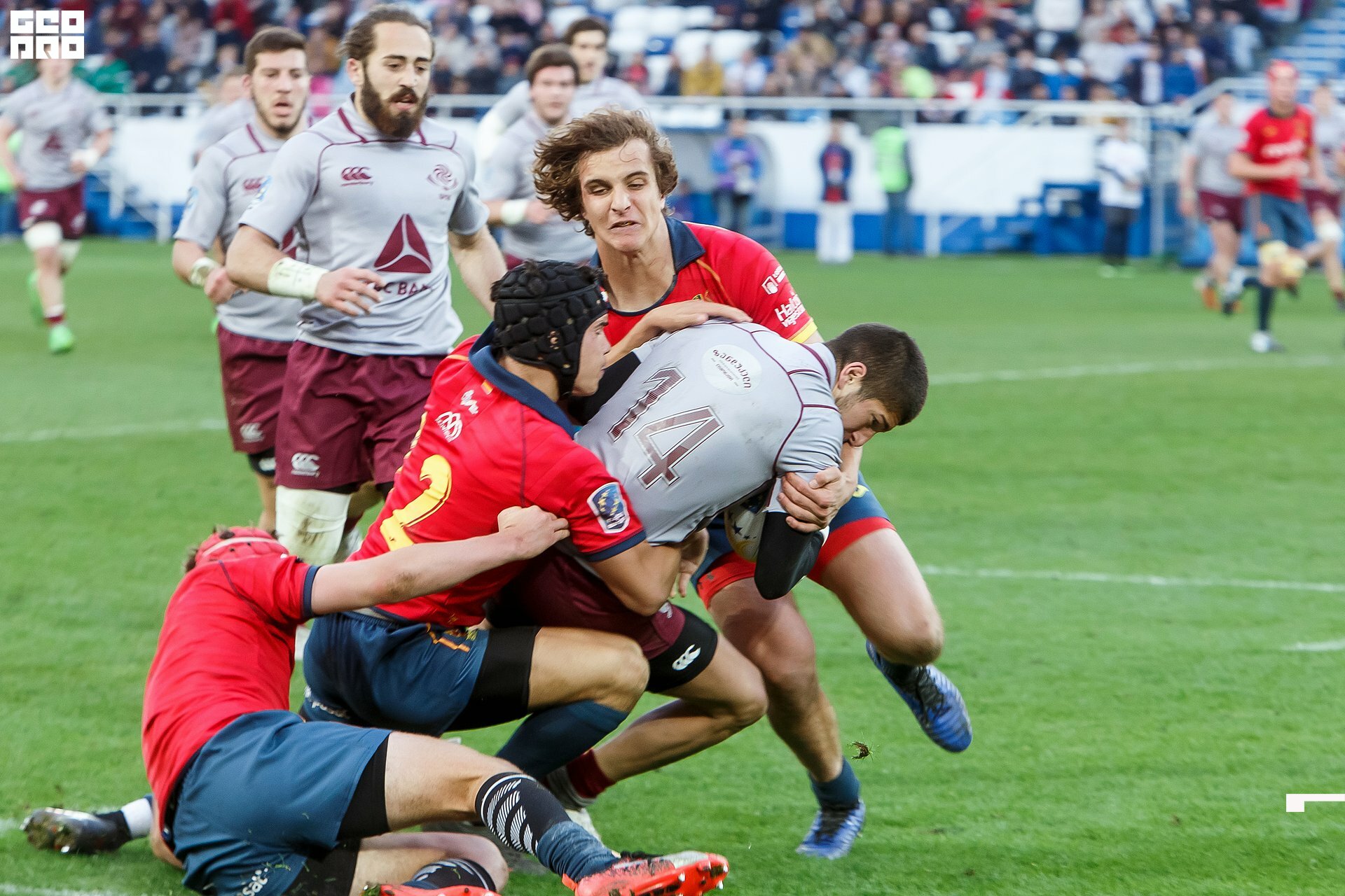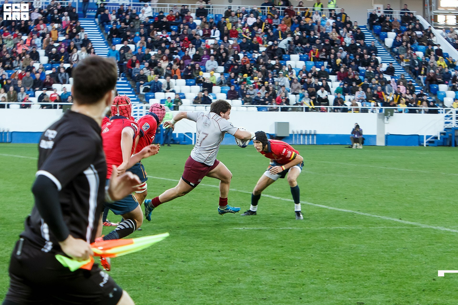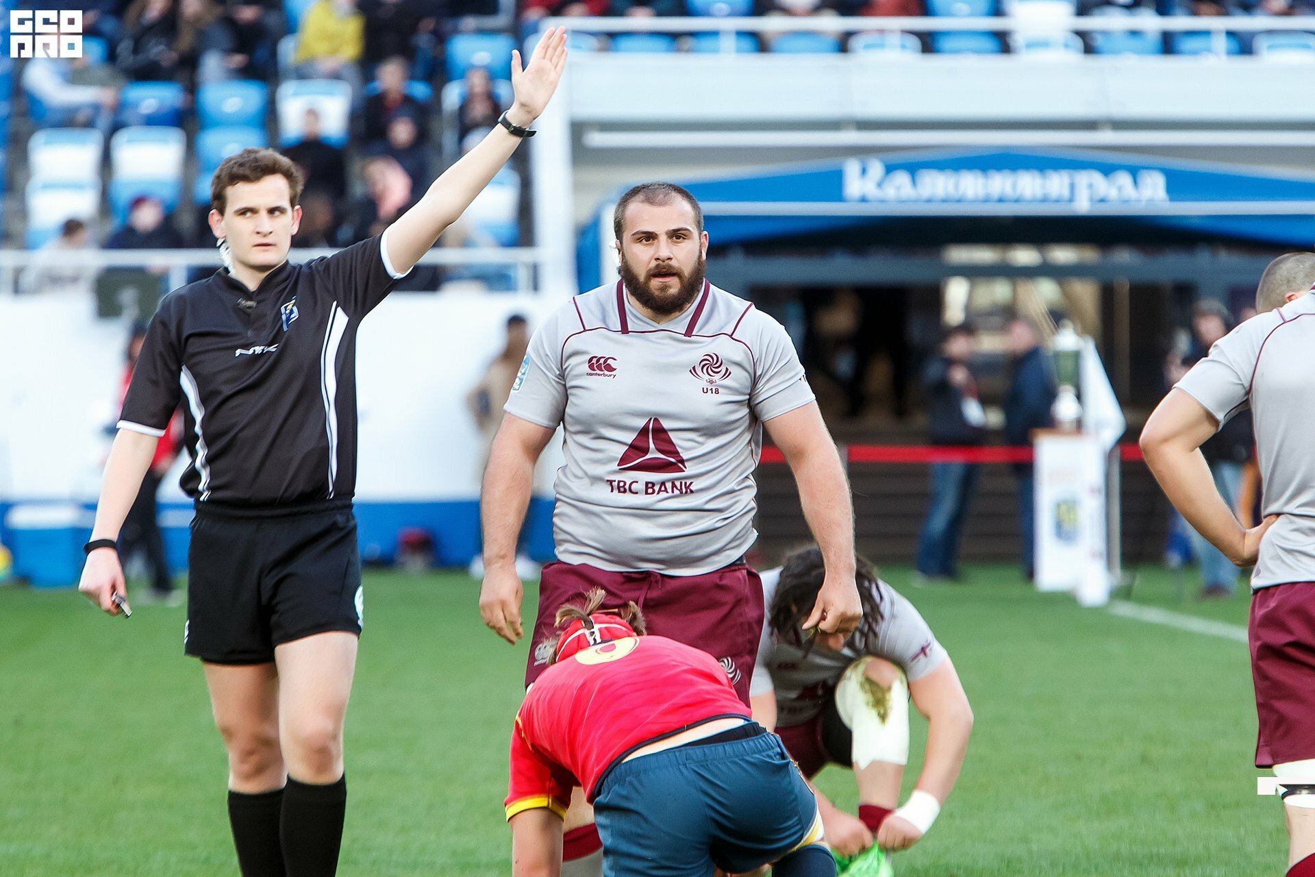 Second and final game of the day was set to become a record-breaker. Witnessed by an astounding 9700 spectators, the match turned out to be the most attended in history of U18 Rugby Championships. Almost ten thousand people including the President of Rugby Europe Octavian Morariu and the Govenor of Kaliningrad Region Anton Alikhanov saw the team of Georgia defeating Spain in a hard but rewarding battle (20:10).