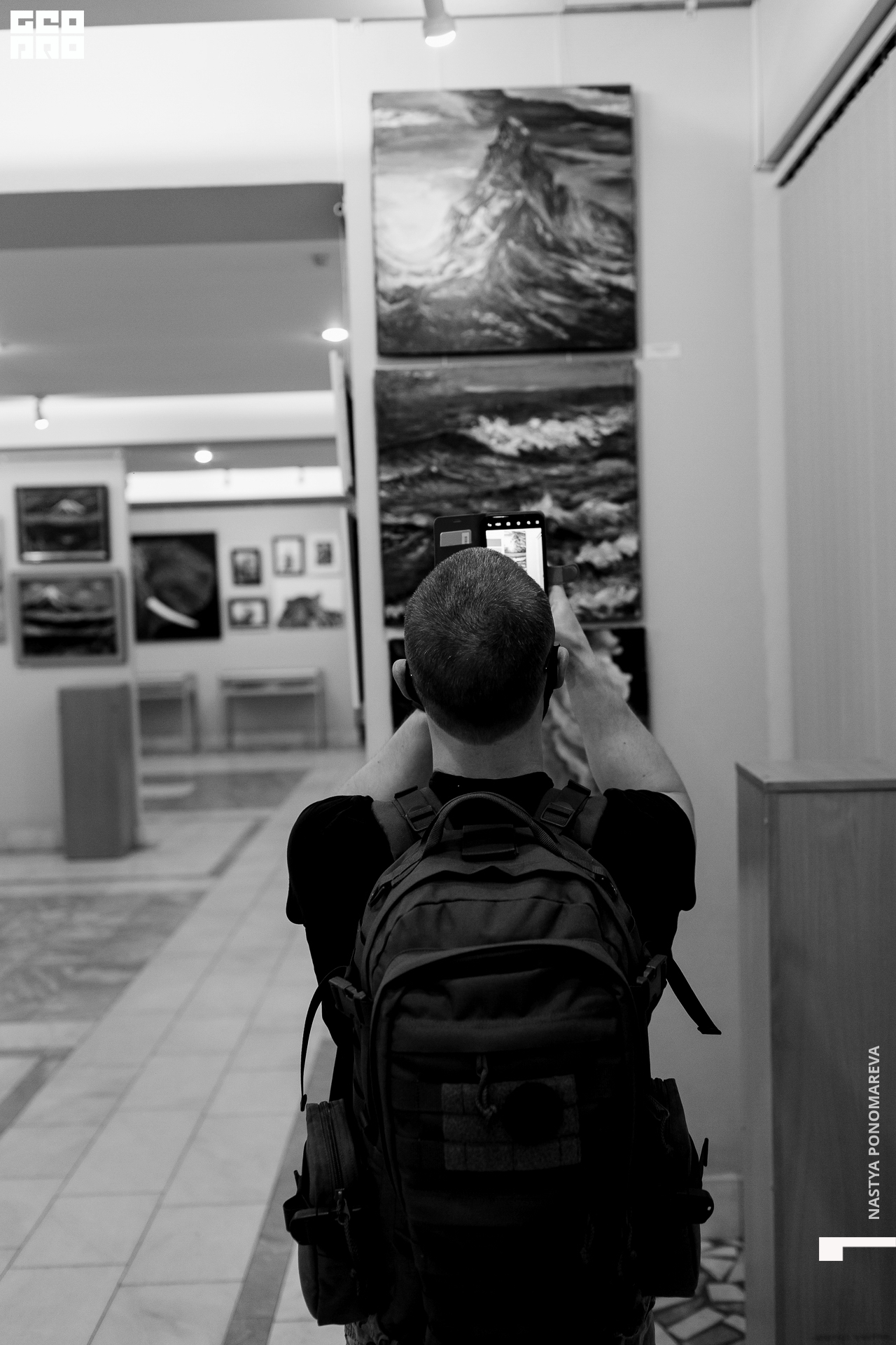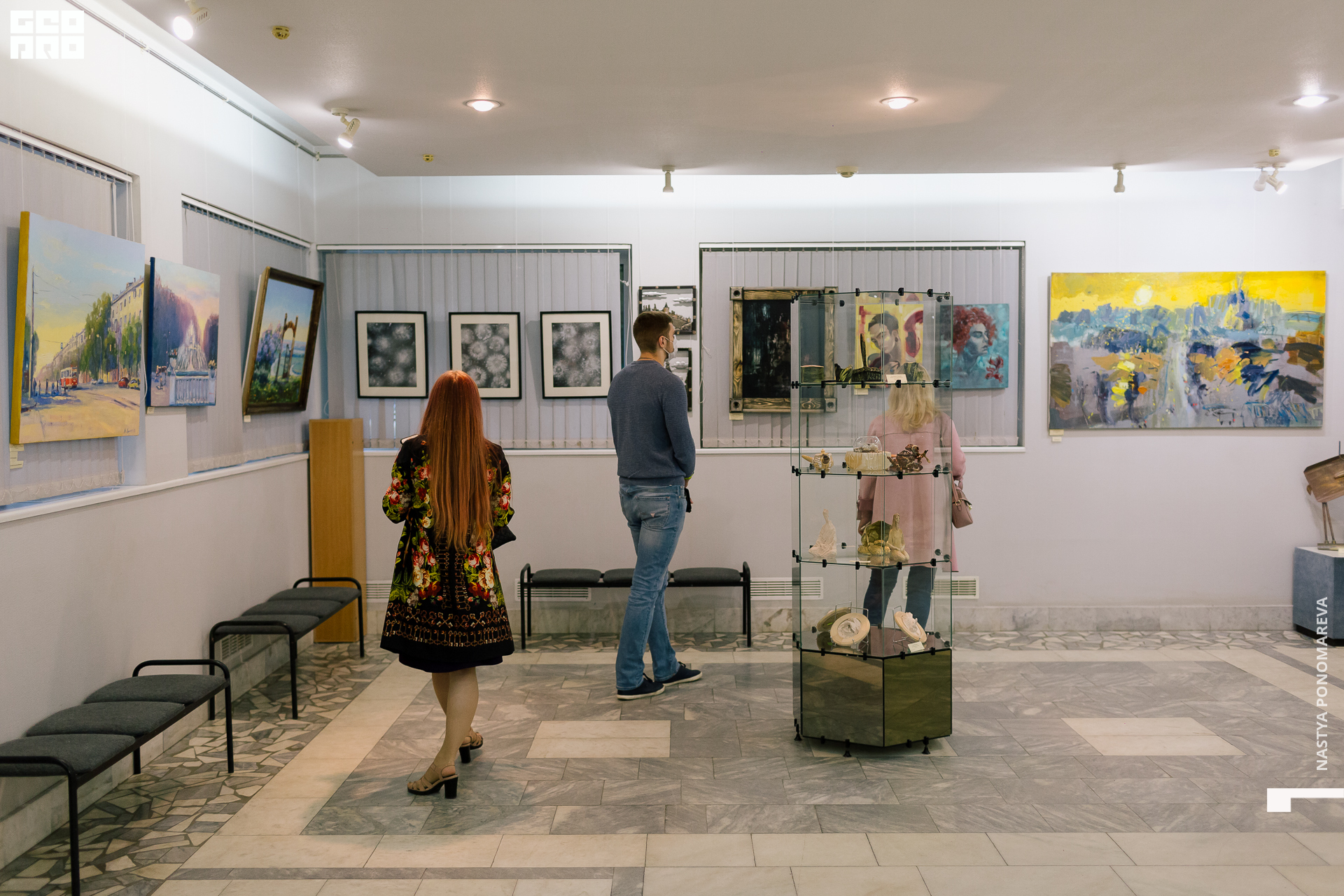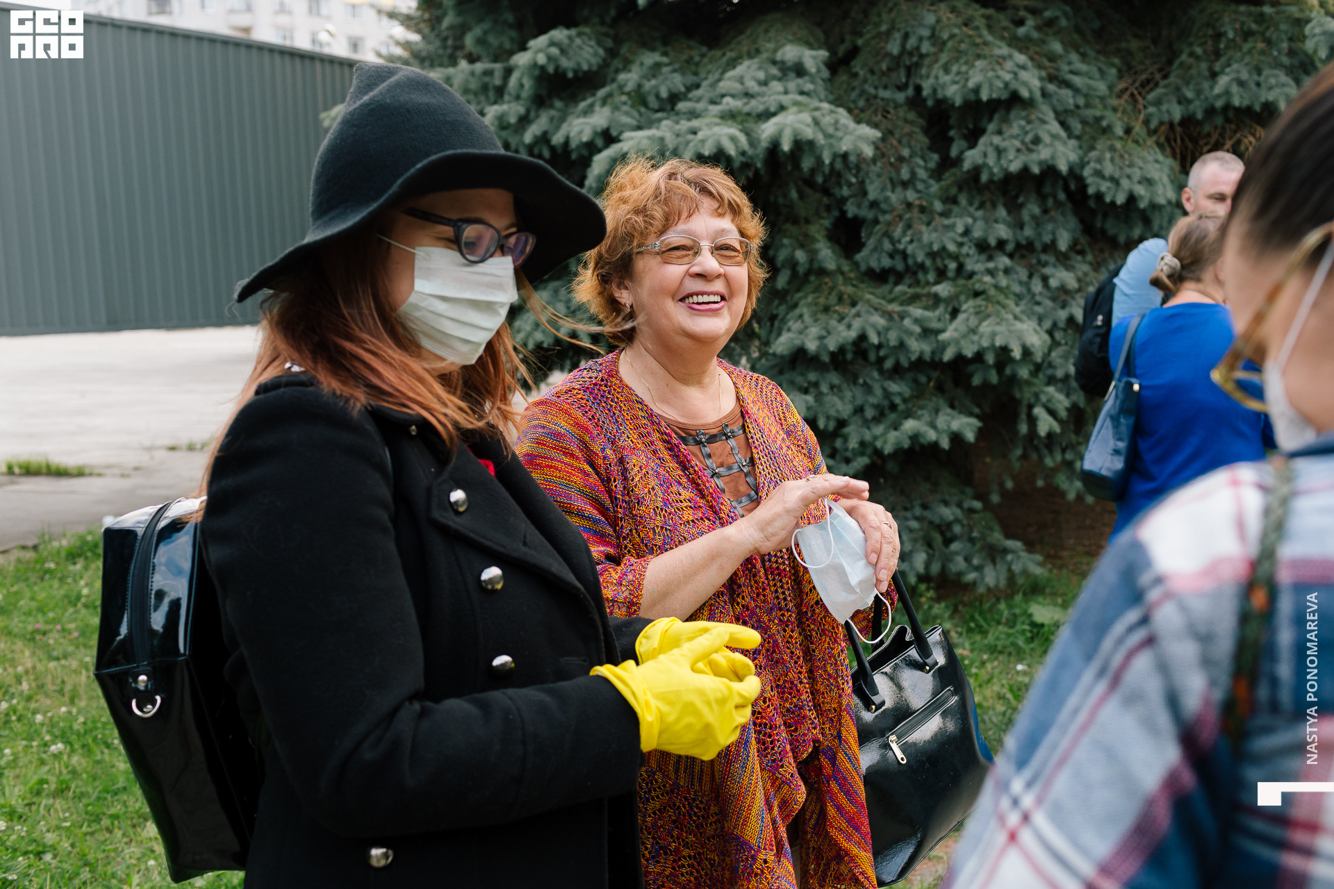 Очная встреча с художниками, участниками выставки «Вертикаль», состоялась на крыльце музея, асфальт площади Героев был размечен, чтобы все присутствующие могли находится на безопасной дистанции друг от друга. Мы все оказались в ситуации дефицита искусства и в рамках перфоманса все стали частью живой очереди из тех, кто хочет посмотреть на искусство и преодолевает для этого препятствия. Группы по 5 человек заходили в музей на 10 минут. Маски и перчатки — обязательный дресс-код этого мероприятия.