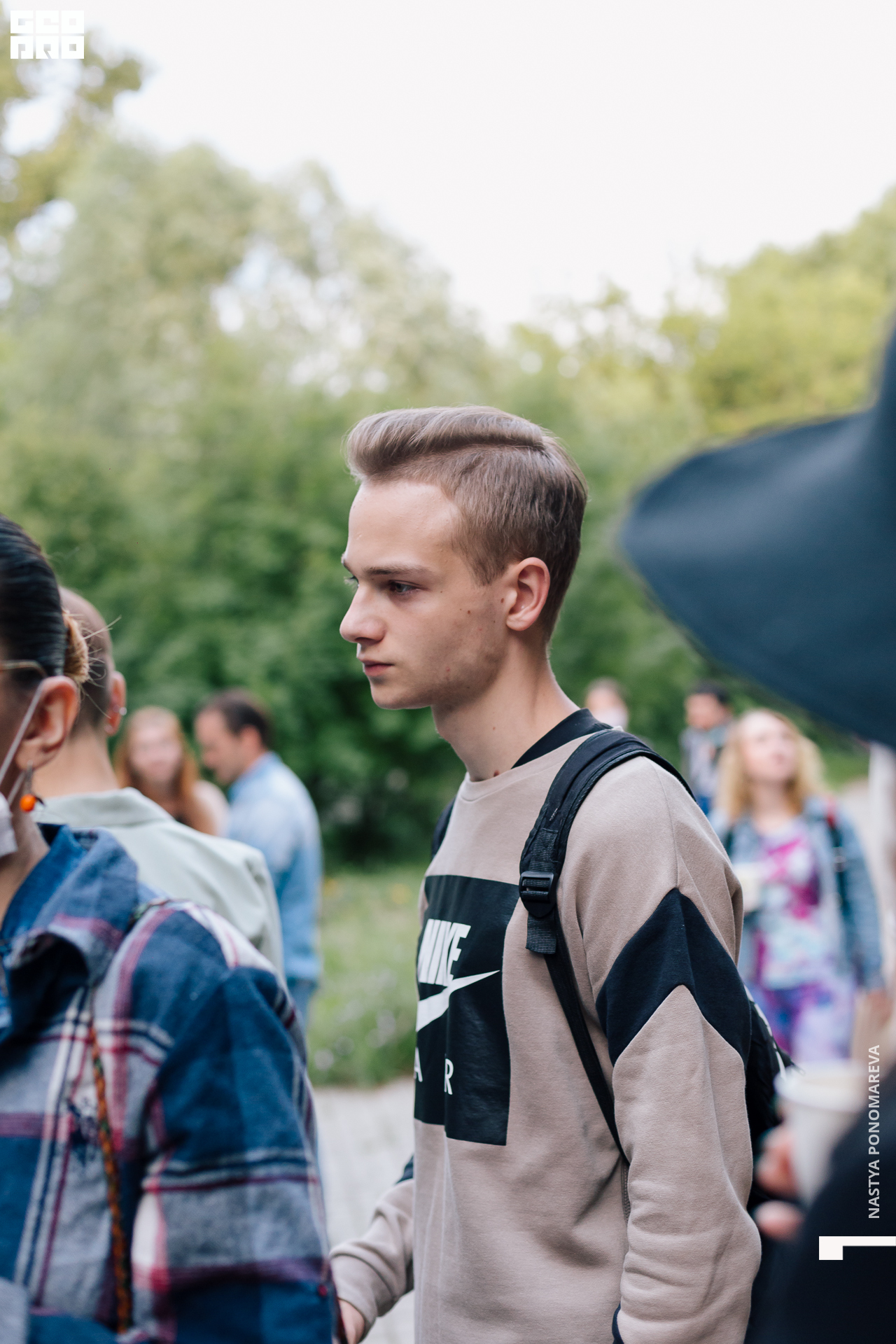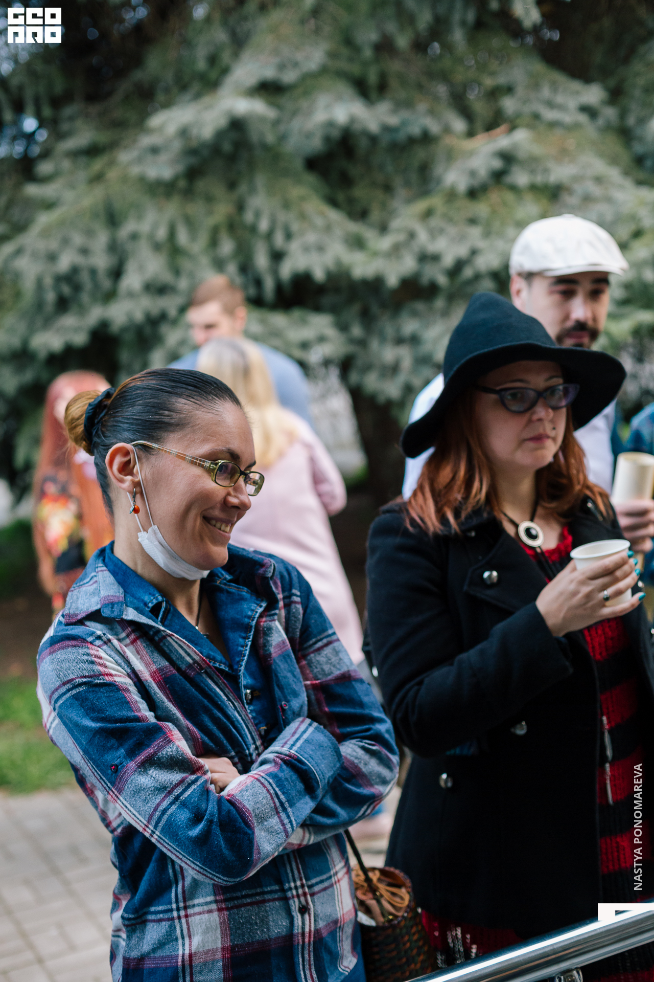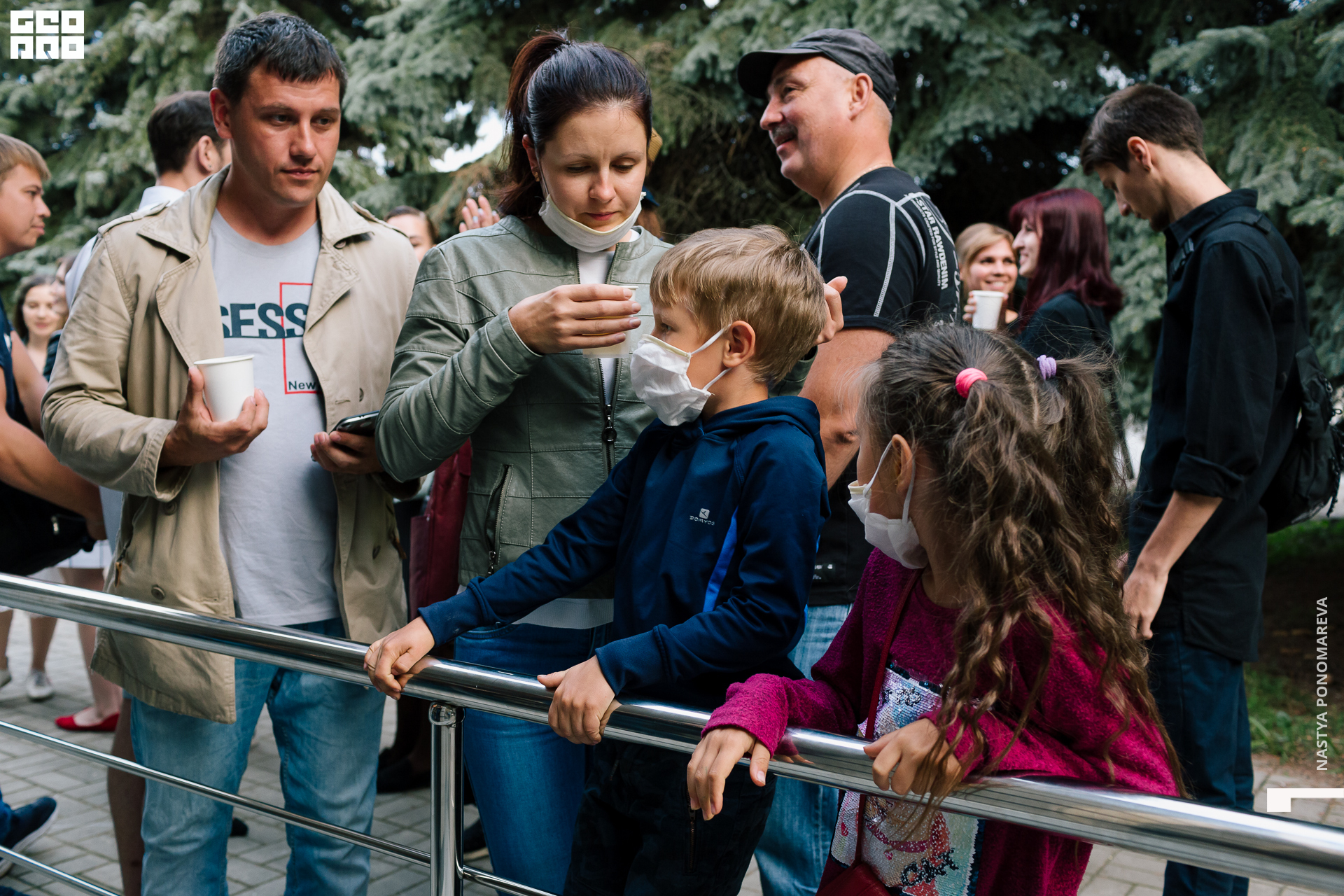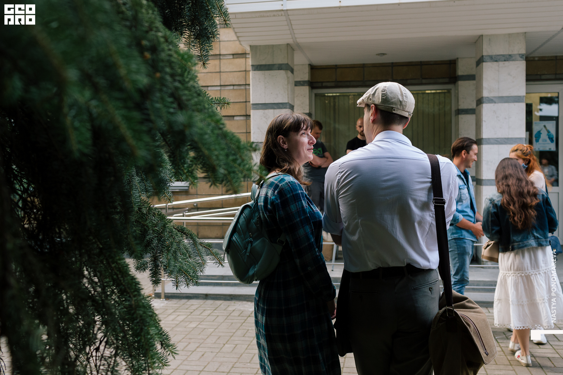 Очная встреча с художниками, участниками выставки «Вертикаль», состоялась на крыльце музея, асфальт площади Героев был размечен, чтобы все присутствующие могли находится на безопасной дистанции друг от друга. Мы все оказались в ситуации дефицита искусства и в рамках перфоманса все стали частью живой очереди из тех, кто хочет посмотреть на искусство и преодолевает для этого препятствия. Группы по 5 человек заходили в музей на 10 минут. Маски и перчатки — обязательный дресс-код этого мероприятия.