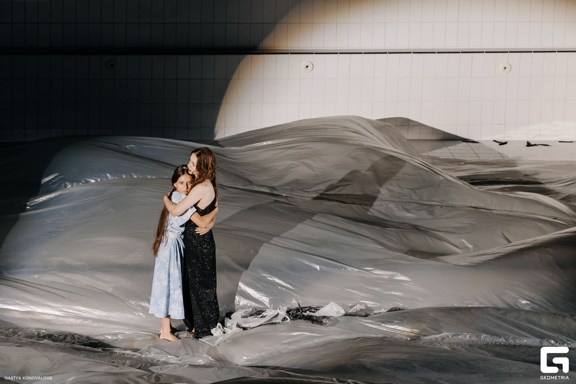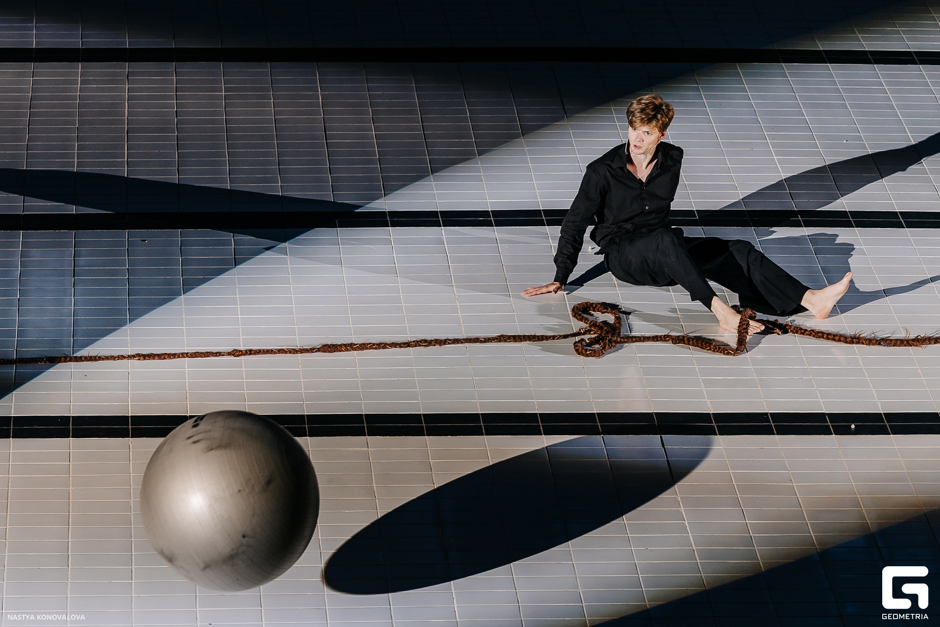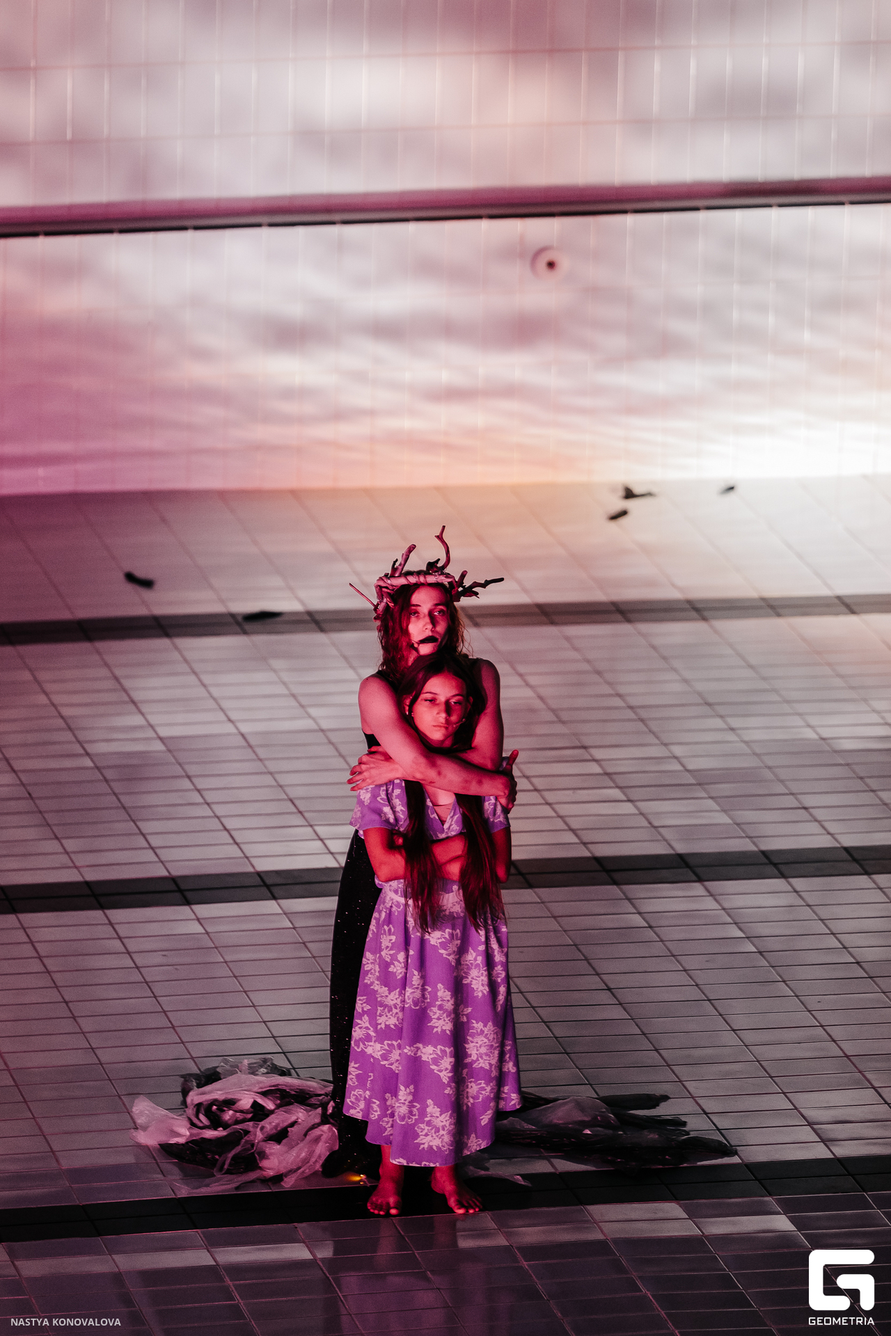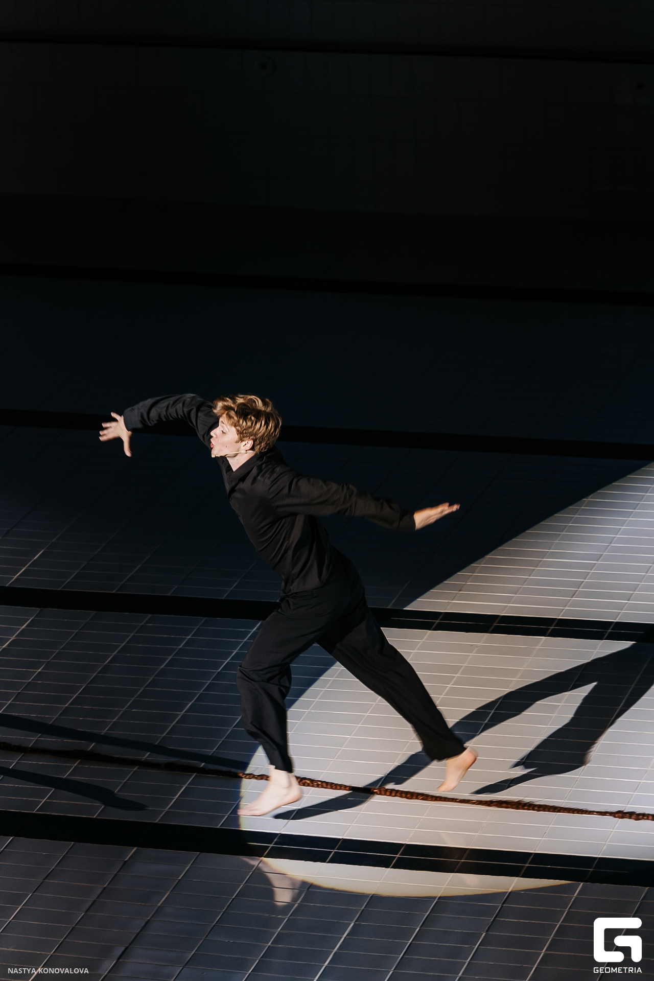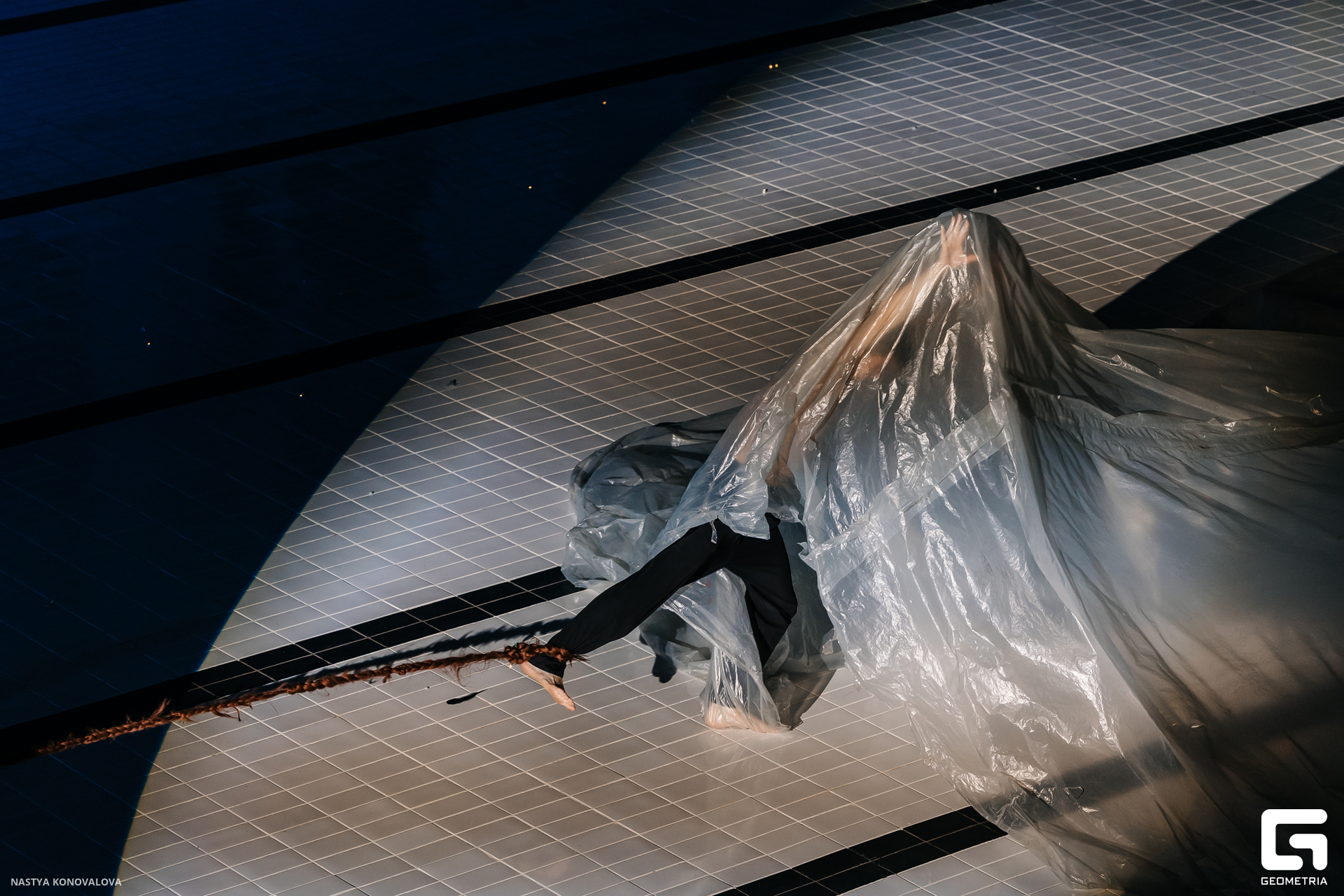 В спектакле Екатерины Половцевой пустой бассейн, ожидающий наполнения, — как омут сомнений, из которых невозможно выбраться. Постоянное ожидание избавления от тревог, самоистязания, чувство вины, надежда на то, что крепко запутанный клубок предательств разрешится и настанет счастливое, спокойное, безмятежное время. Но в этом ожидании жизнь замирает, гниёт и человек превращается в собственную тень.